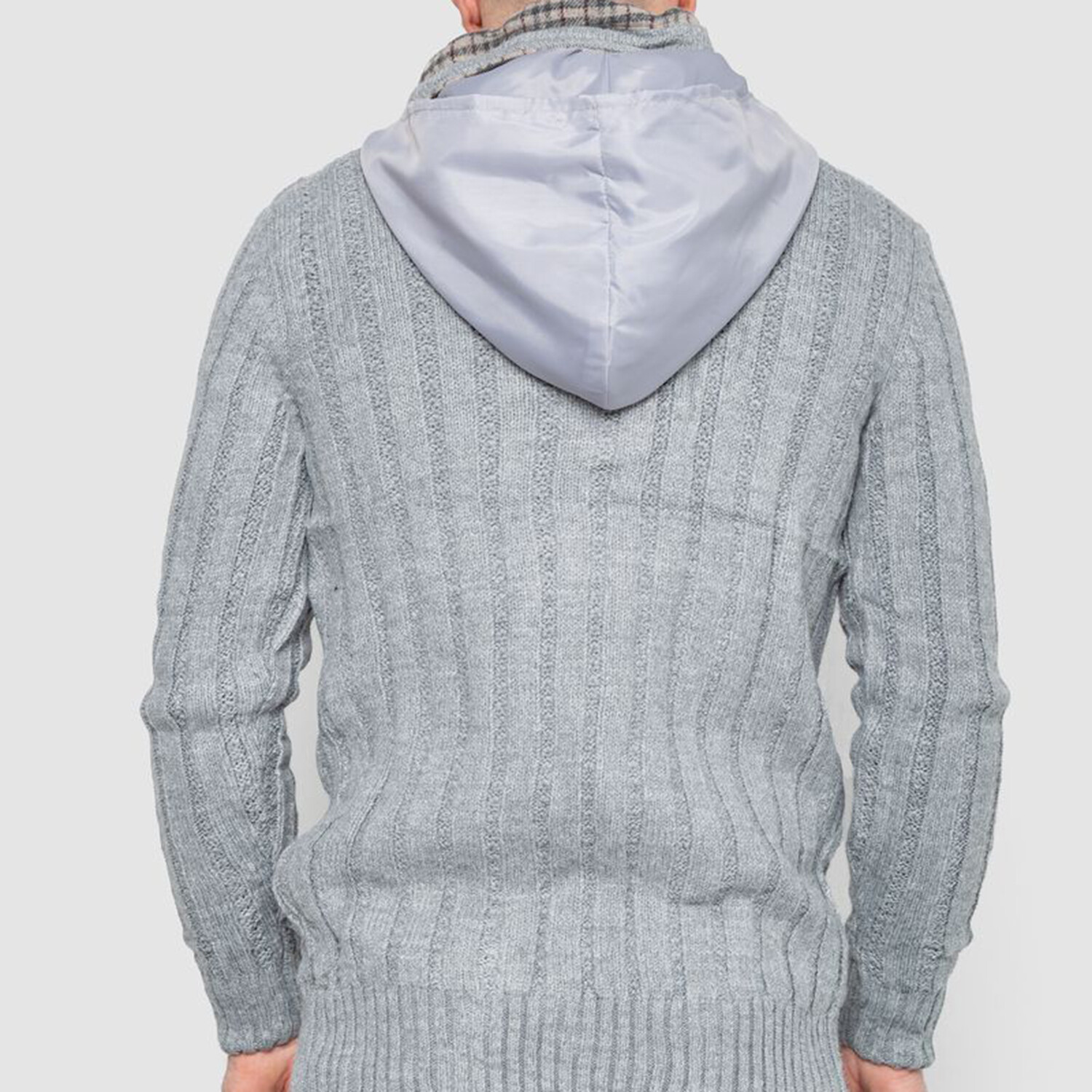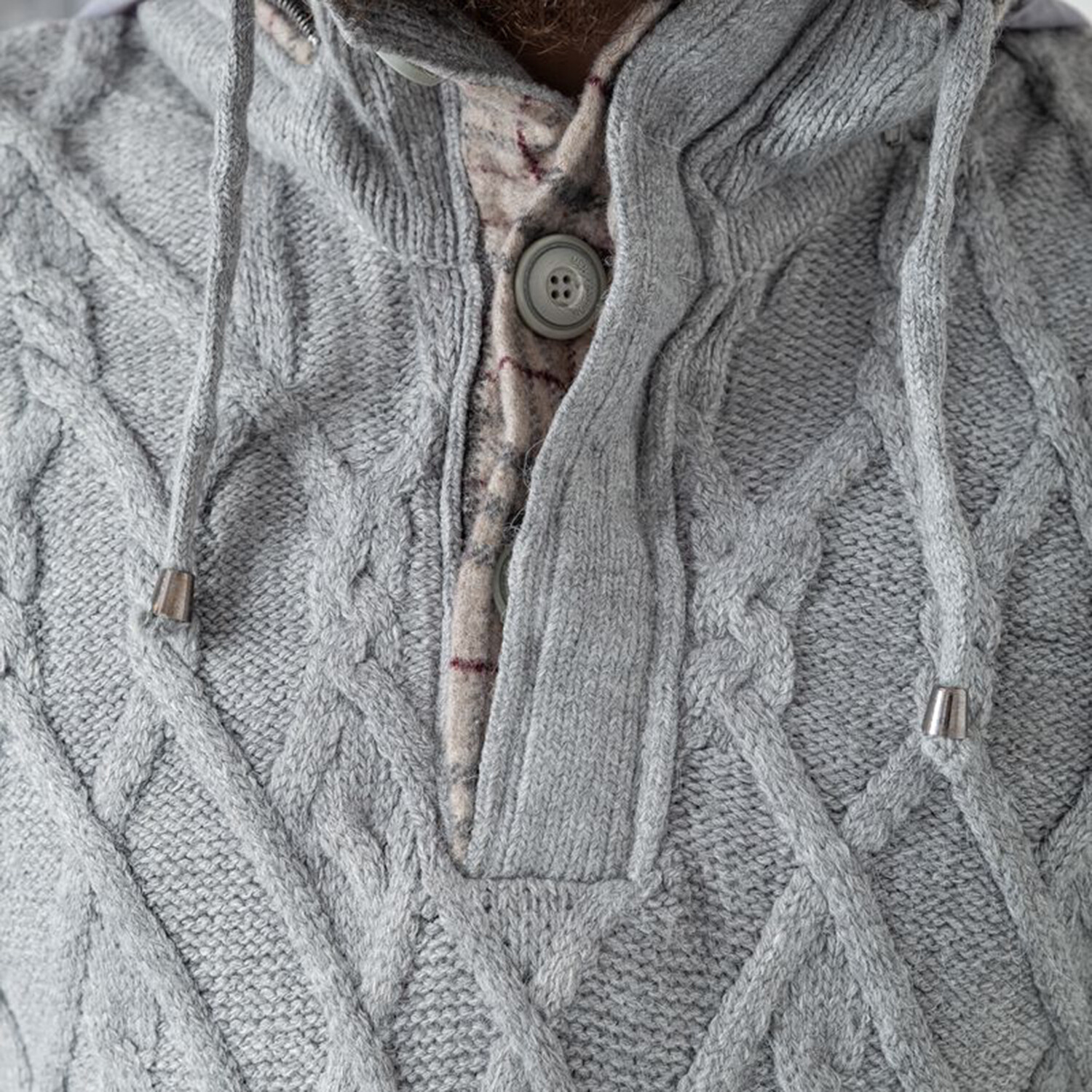 Half-Button Cableknit Hooded Sweater // Gray