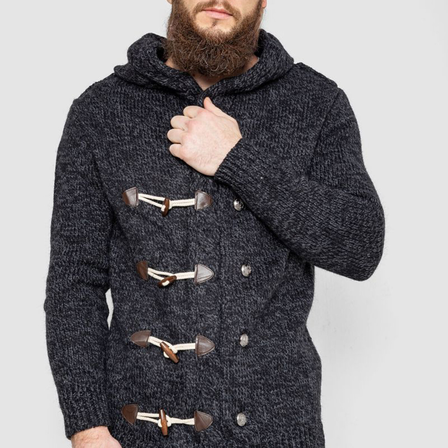 Horn Button-Up Hooded Cableknit Sweater // Beige
