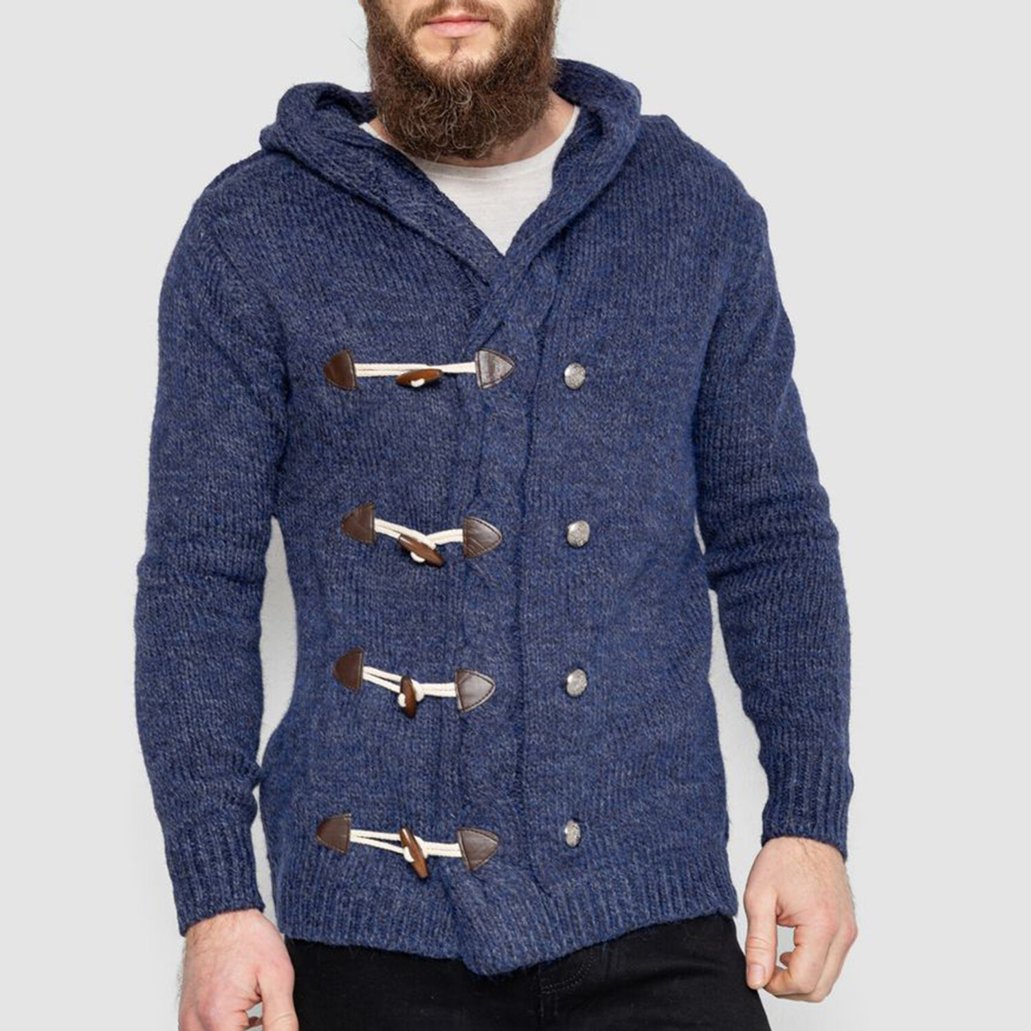 Horn Button-Up Hooded Cableknit Sweater // Blue