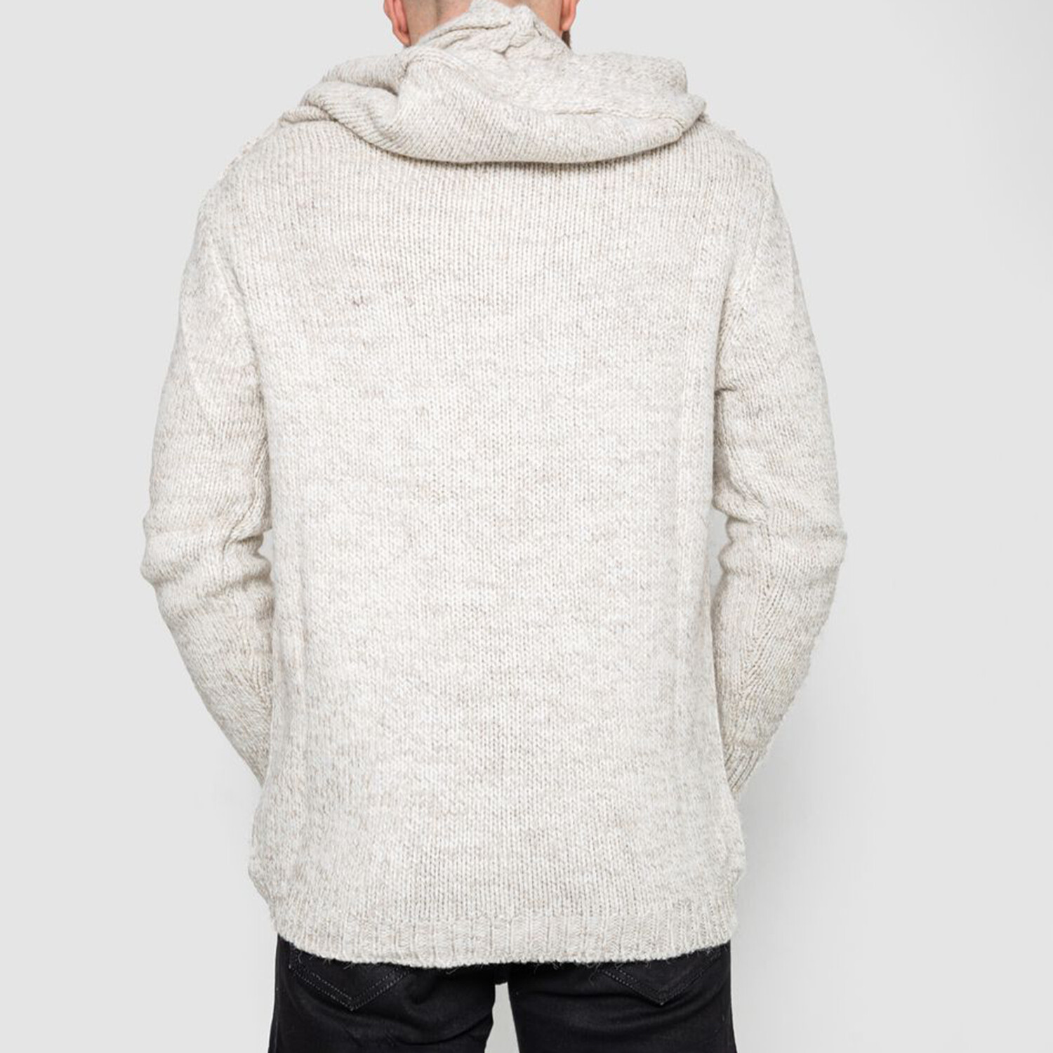 Horn Button-Up Hooded Cableknit Sweater // Light Beige
