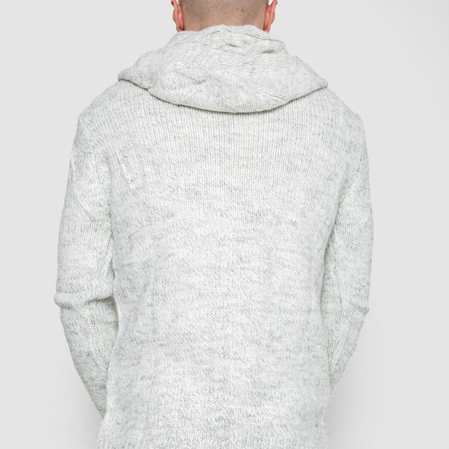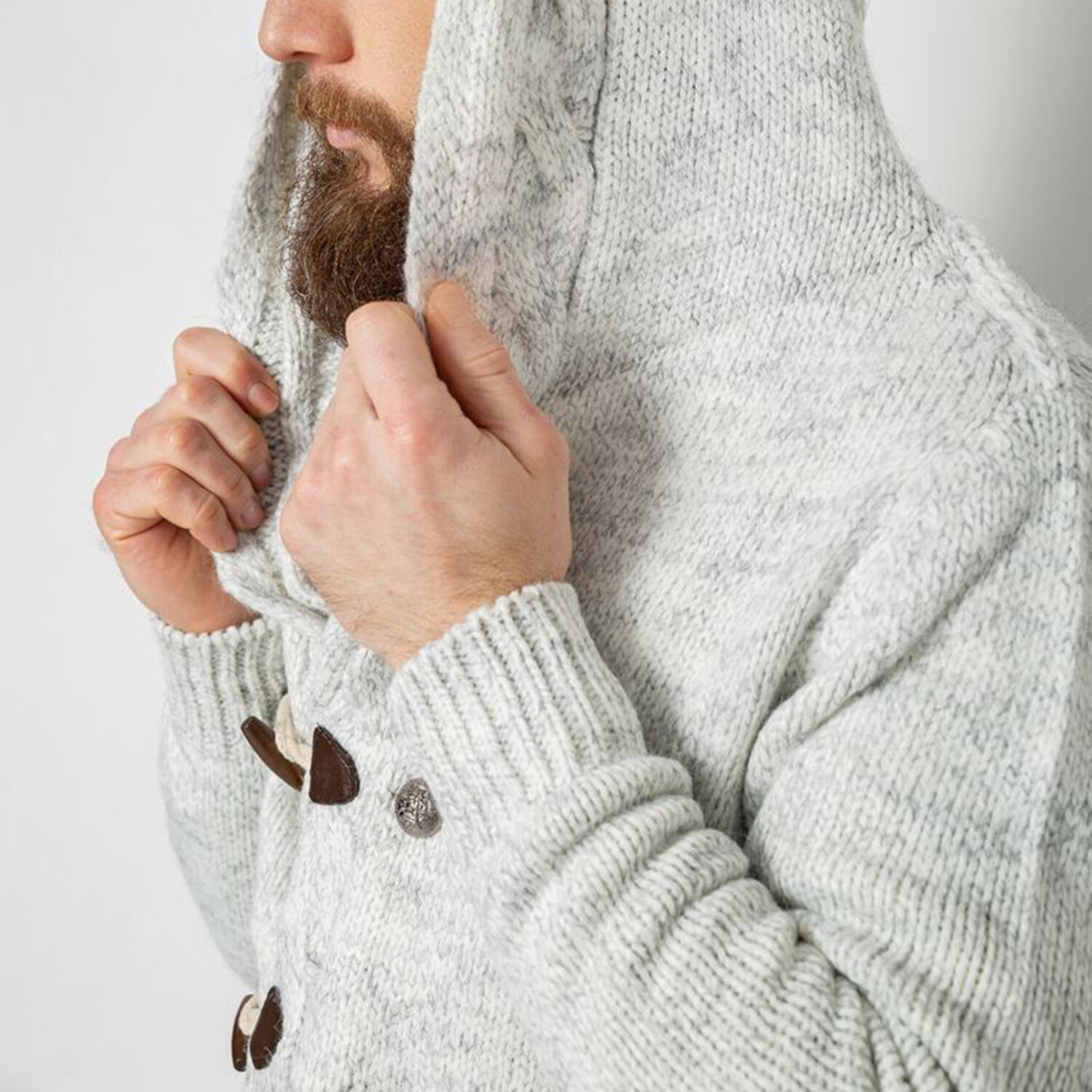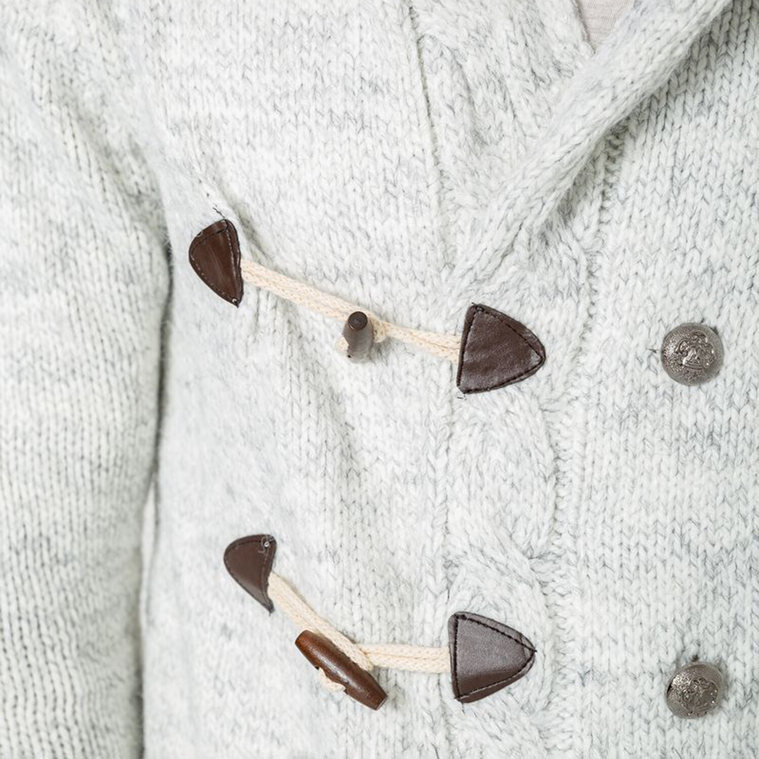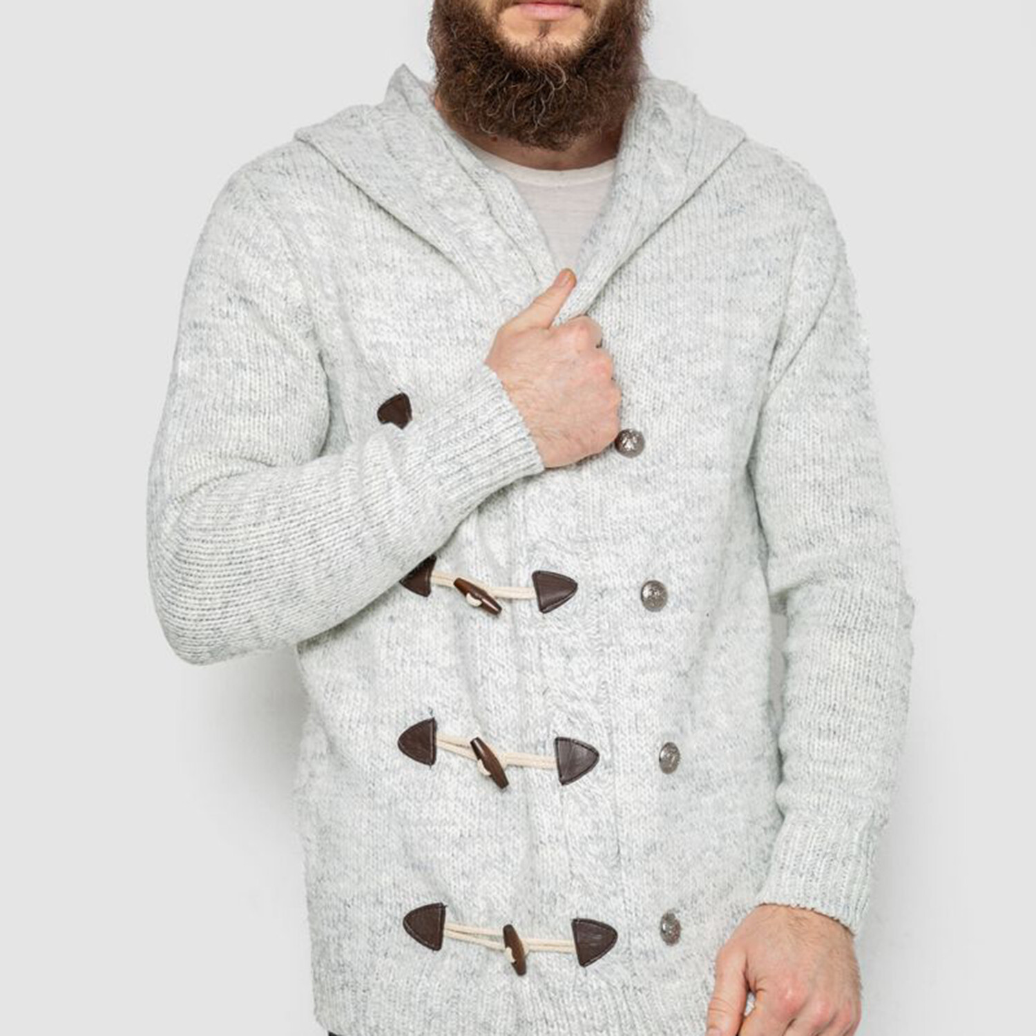 Horn Button-Up Hooded Cableknit Sweater // Light Gray
