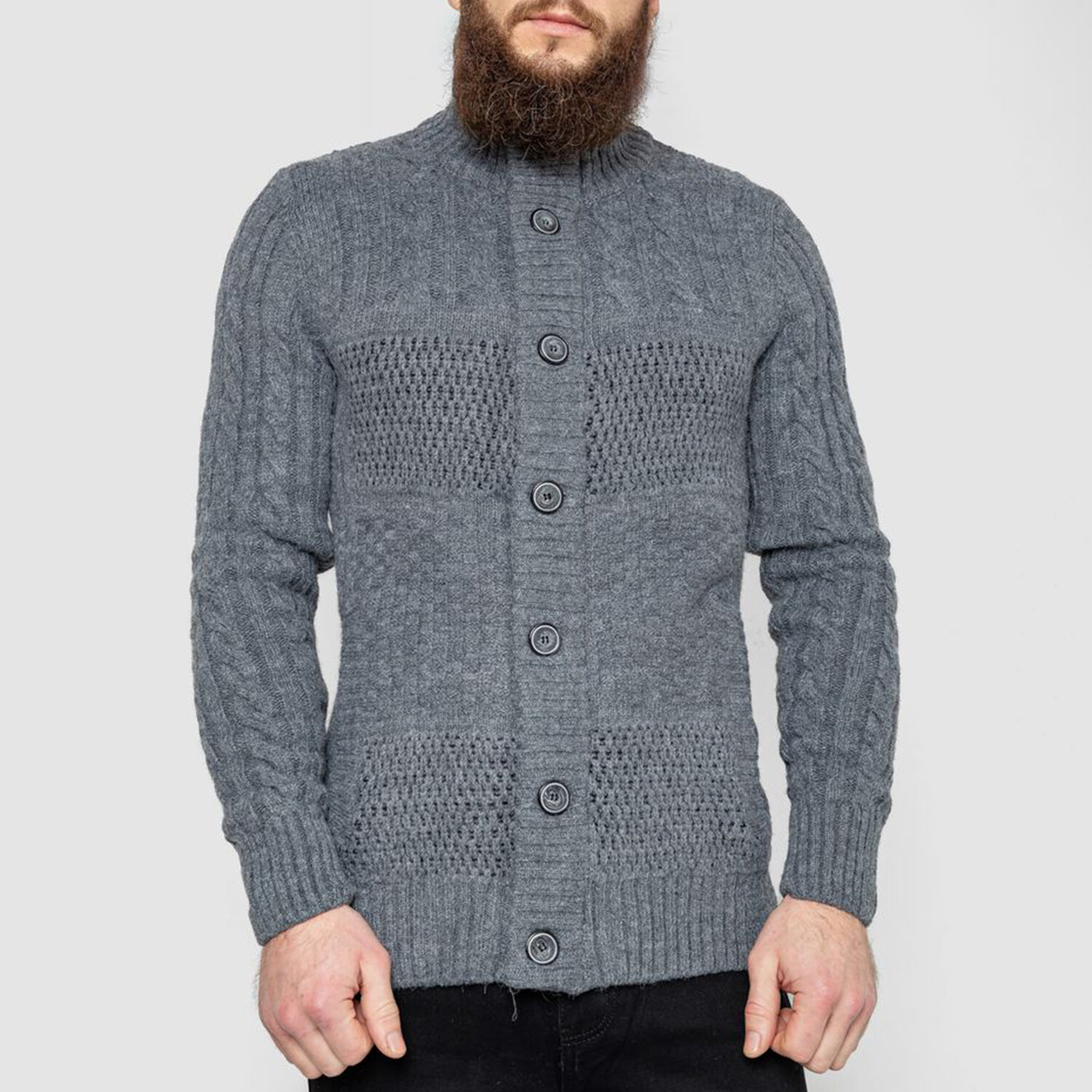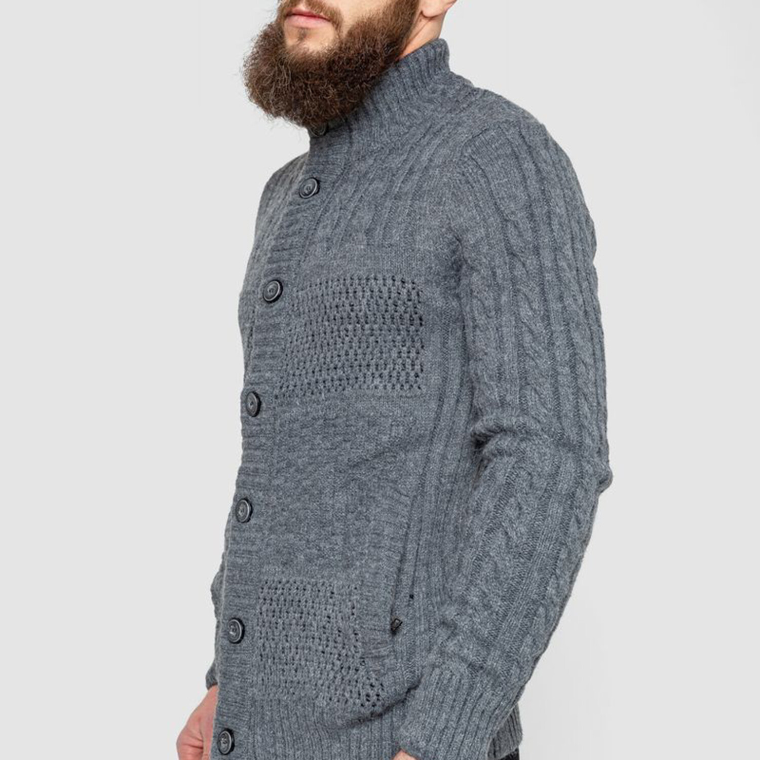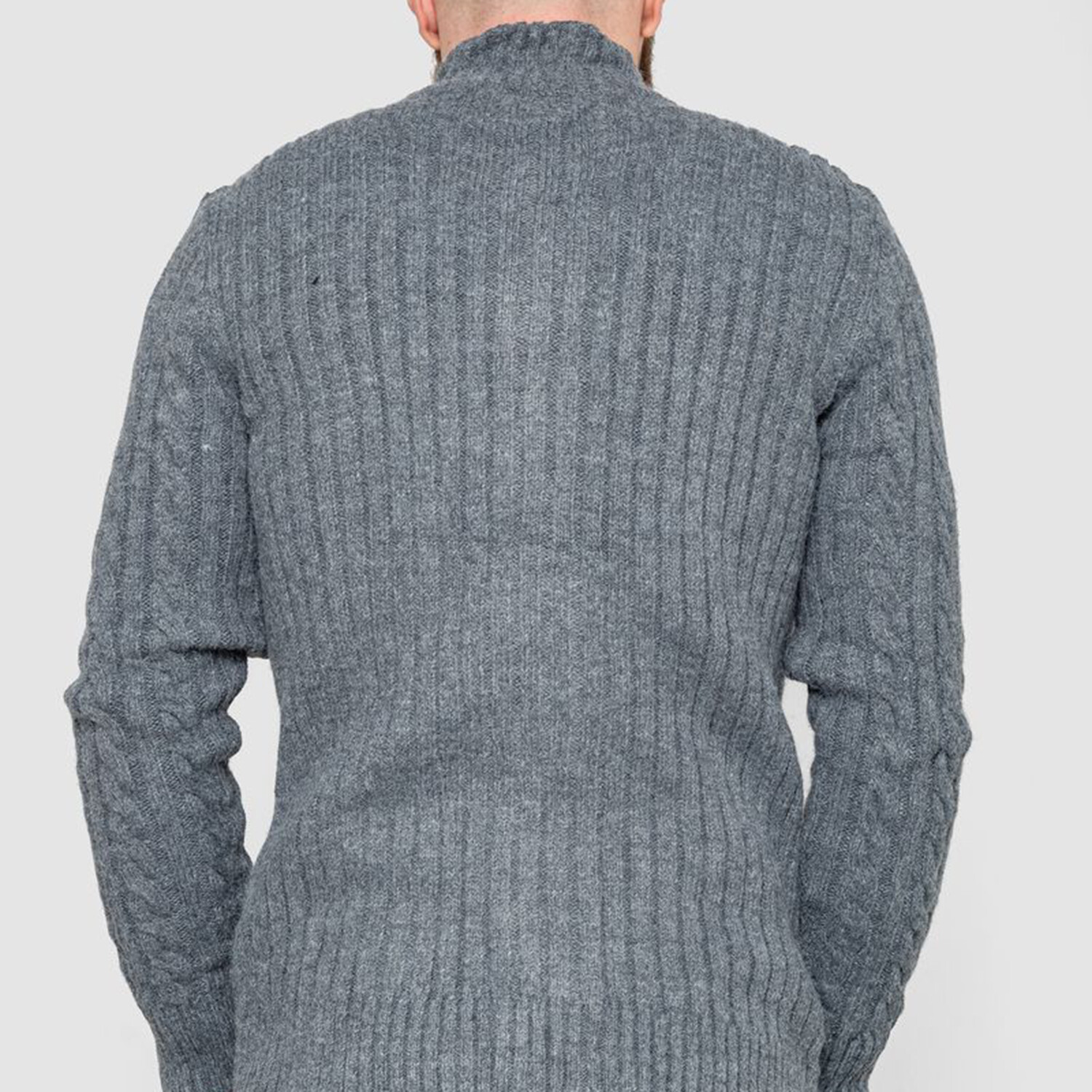 Turtleneck Button-Up Cableknit Sweater // Gray