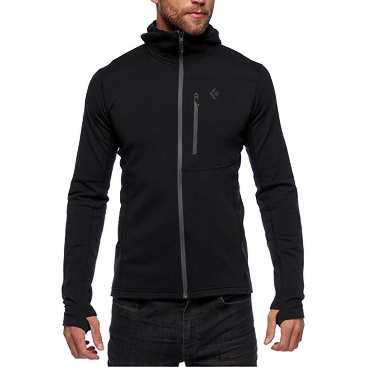 For any cold-weather activity., Simple and versatile, the Black Diamond Men's CoEfficient Fleece Hooded Jacket works as a midlayer or on its own whether you're earning turns in the backcountry, cranking on some ice walls, or headed down south for some cold-weather rock climbing. The CoEfficient's Polartec Power Dry High Efficiency fabric is incredibly breathable to keep you comfortable while you pull in the vertical world or break trail up steep slopes, and the fabric gives the jacket fast dry times to pull moisture off your body before it turns to sweat, leaving you dry and happy wherever you are. The hood slides under a climbing helmet for added warmth on windy belays, and the lined neck with brushed microsuede delivers comfort you'll appreciate on the wall and out in the backcountry. Responsible Collection: Bluesign Approved Material: 51% polyester, 36% nylon, 13% elastane Fleece Weight: lightweight Windproof Rating: Fit: slim Length: hip Center Back Length: [medium] 28in Hood: yes Pockets: 1 zippered chest Venting: Thumbholes: integrated Reflective: Anti-Odor: Claimed Weight: 10oz Activity: Manufacturer Warranty: 1 year Fur Information: