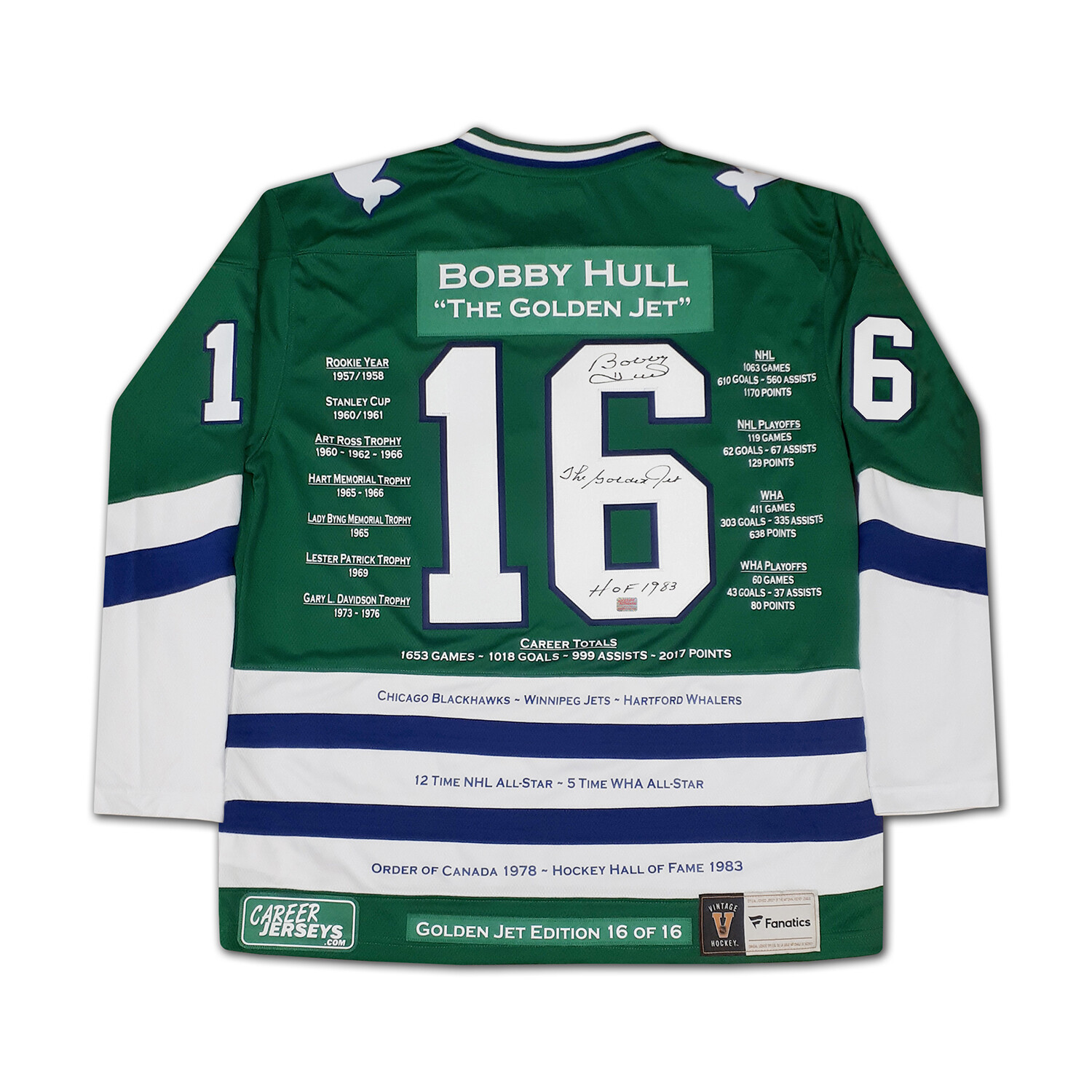 Bobby Hull // Autographed Green Hartford Whalers Career Jersey // Limited Edition 16/16