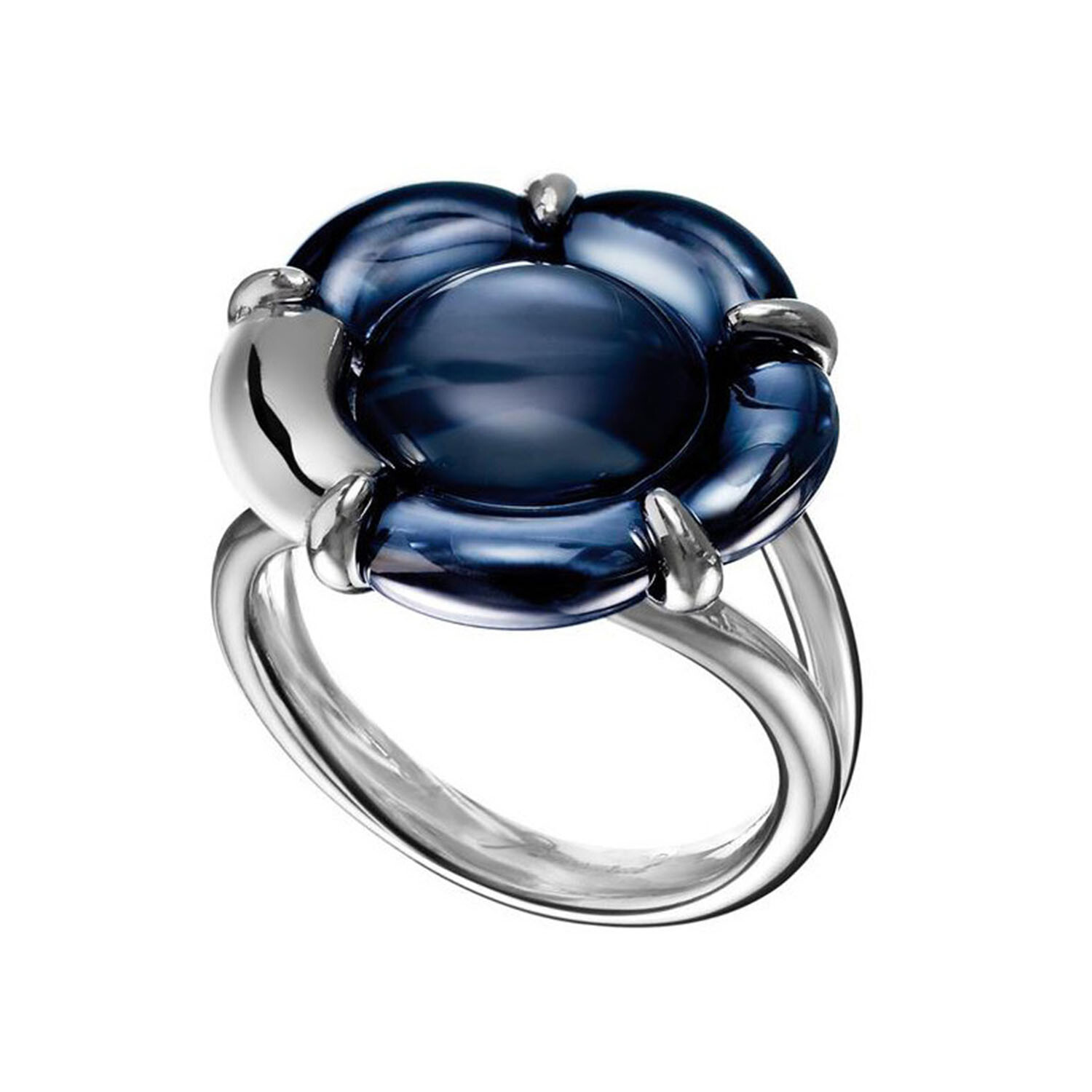 Baccarat B Flower Thin Silver Crystal Ring // Ring Size: 5 // Blue