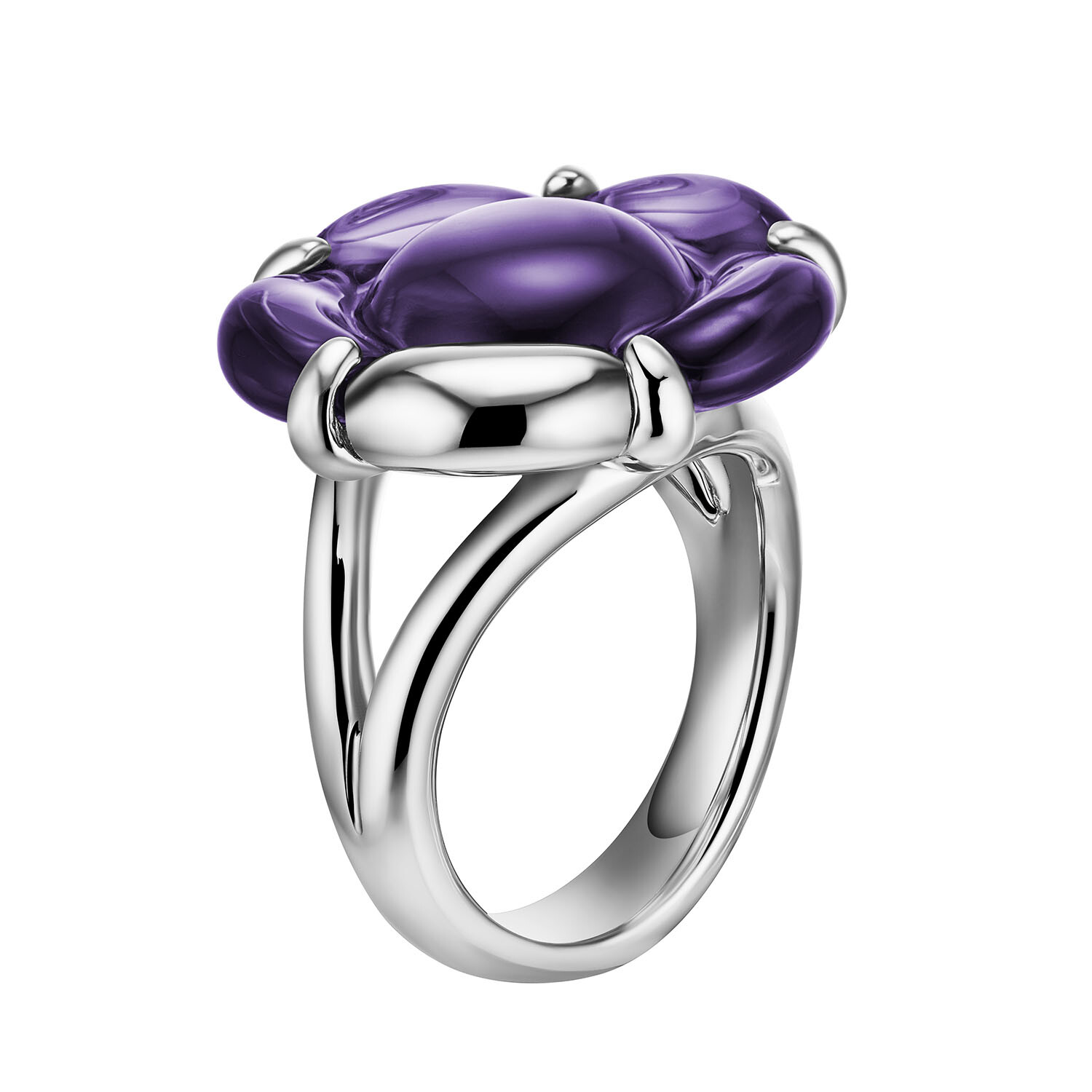 Baccarat B Flower Thin Silver Crystal Ring // Ring Size: 5 // Purple