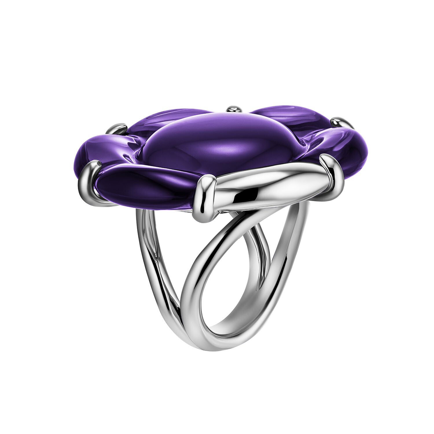 Baccarat B Flower Thin Silver Crystal Ring // Ring Size: 5 // Purple + Silver
