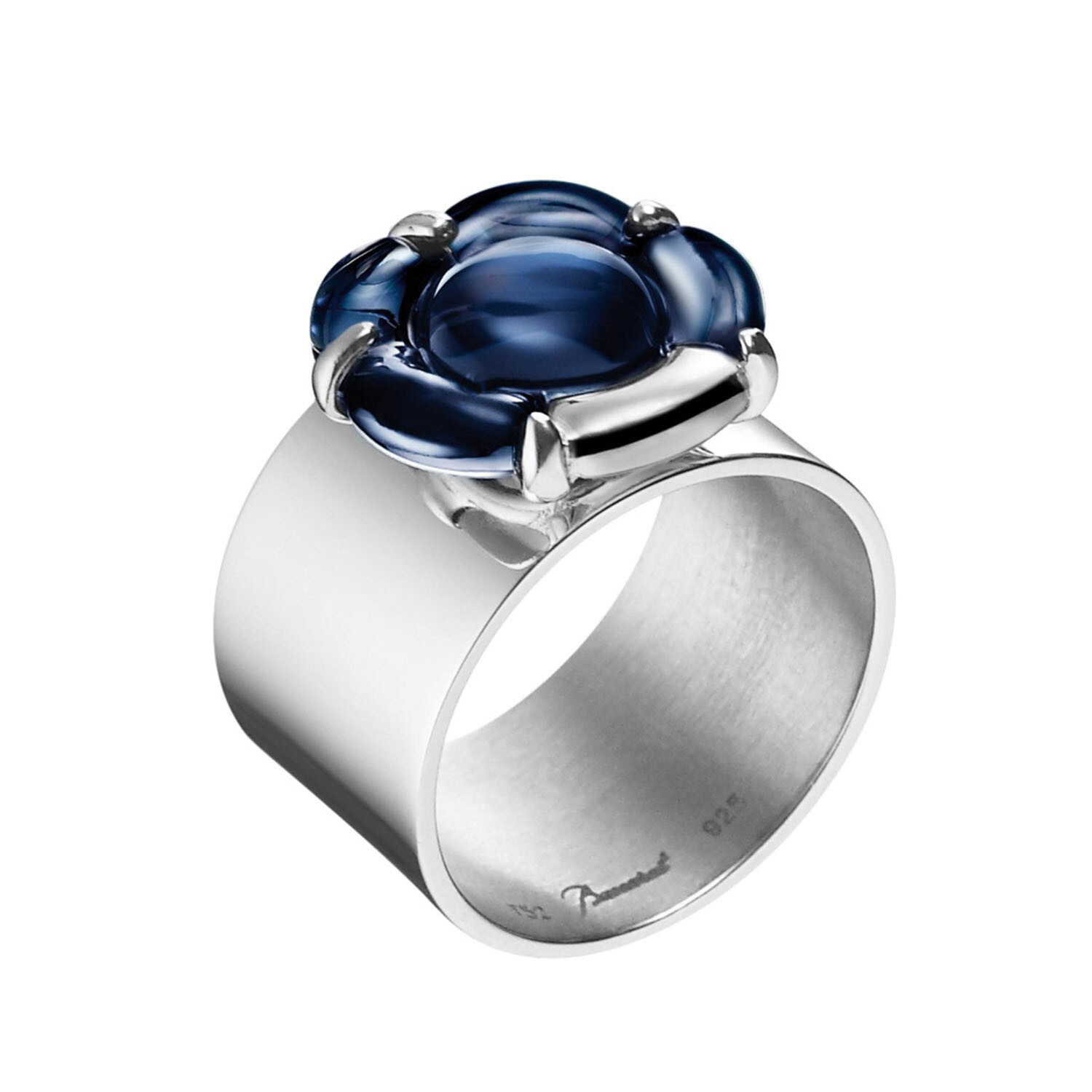 Baccarat B Flower Wide Silver Crystal Ring // Ring Size: 5 // Blue