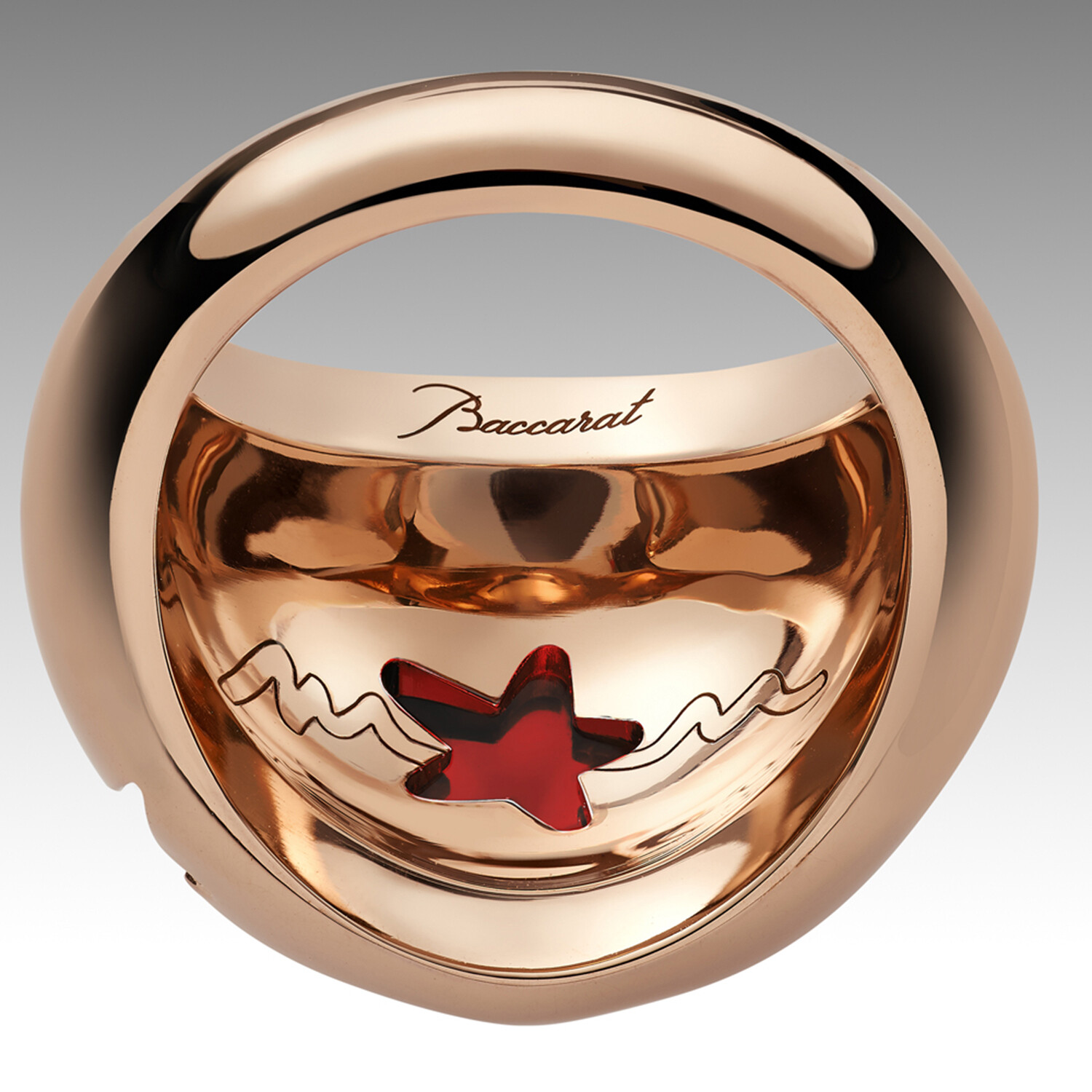 Baccarat Gold Vermeil Star of My Heart Crystal Ring // Ruby Red