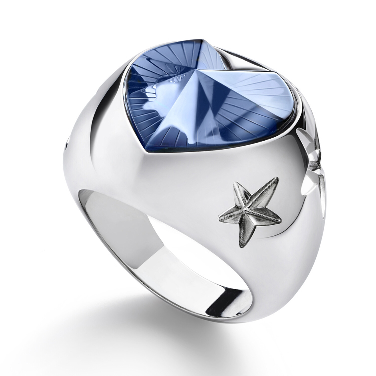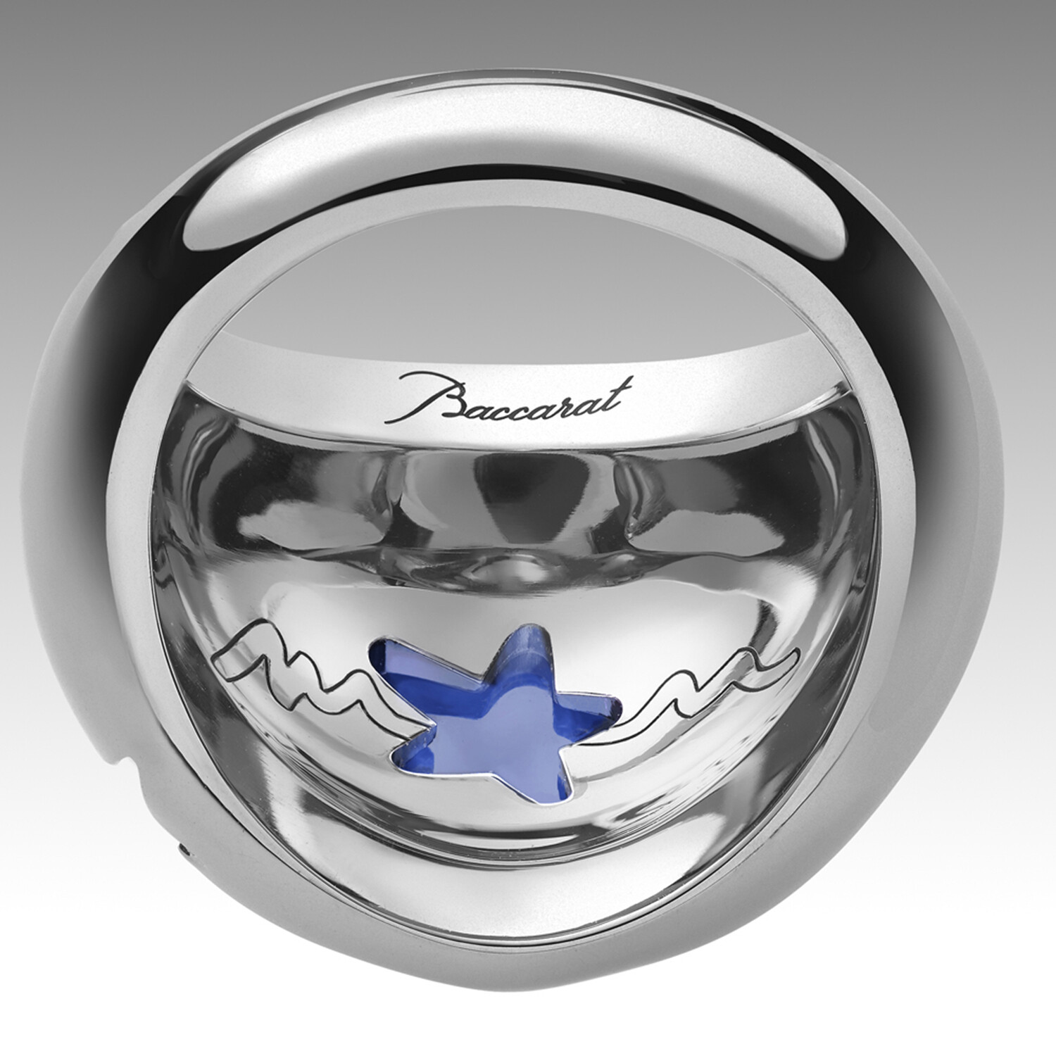 Baccarat Silver Star of My Heart Crystal Ring // Blue