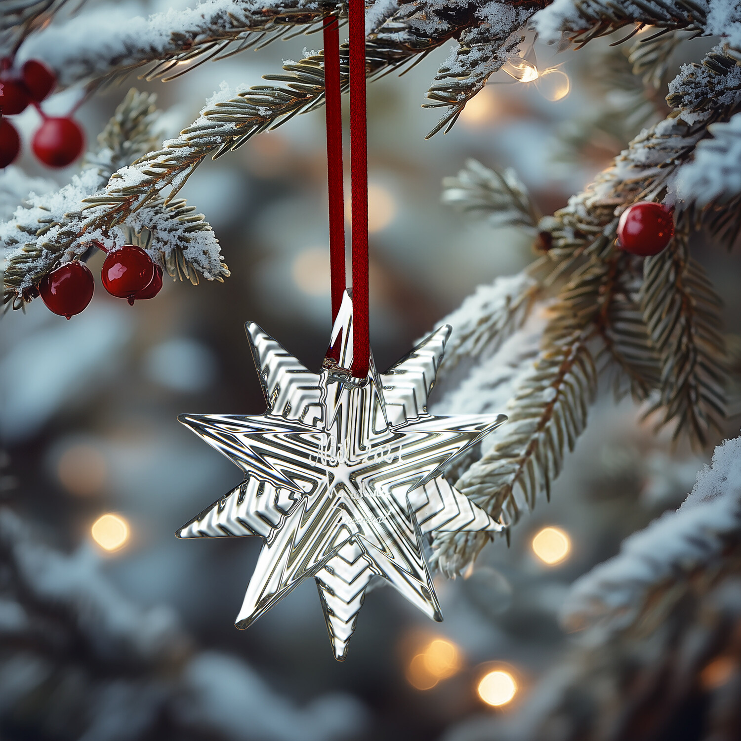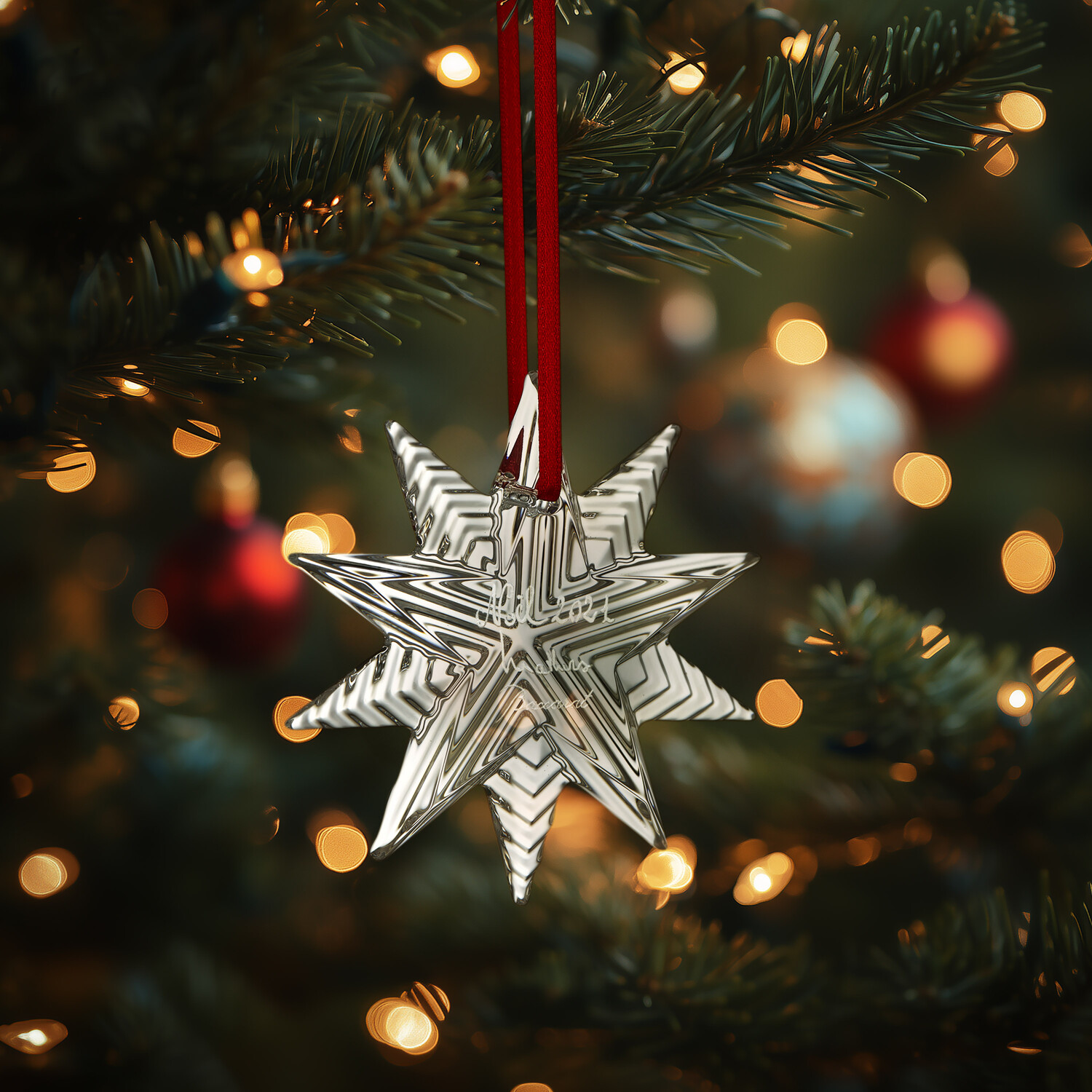 Bezel: The product's design is inspired by the Mille Nuits collection. The two plaques are engraved with NOËL 2021, an engraving preceding the Baccarat and Mathias signatures. They are sold with a red ribbon, The product's design is inspired by the Mille Nuits collection. The two plaques are engraved with NOËL 2021, an engraving preceding the Baccarat and Mathias signatures. They are sold with a red ribbon