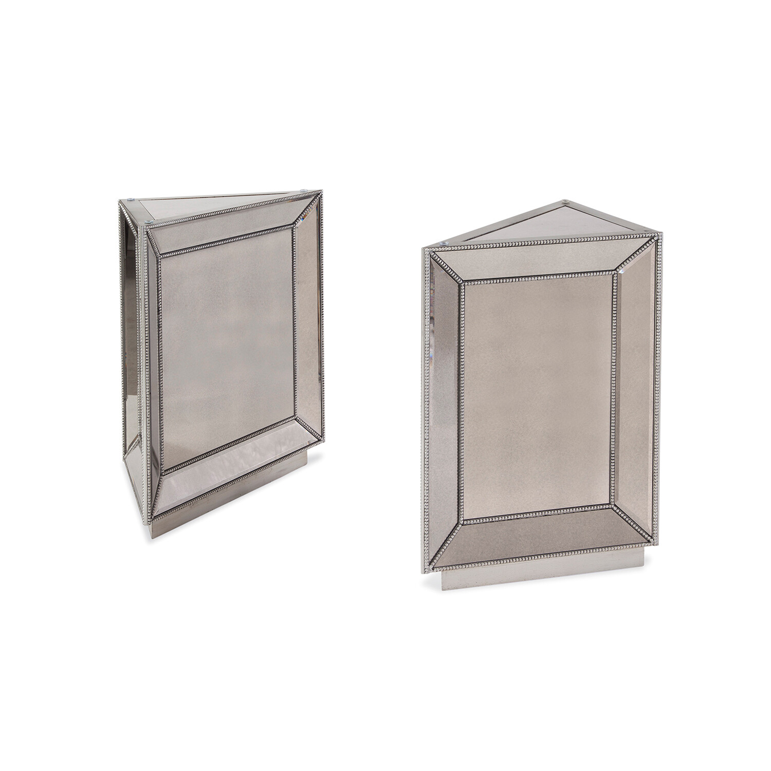 The Murano Pedestal Dining Base features triangular pedestal bases with antiqued picture-frame edged mirror panels and a 100% silver leaf beaded detail that adds modern elegance to an Old World charm.