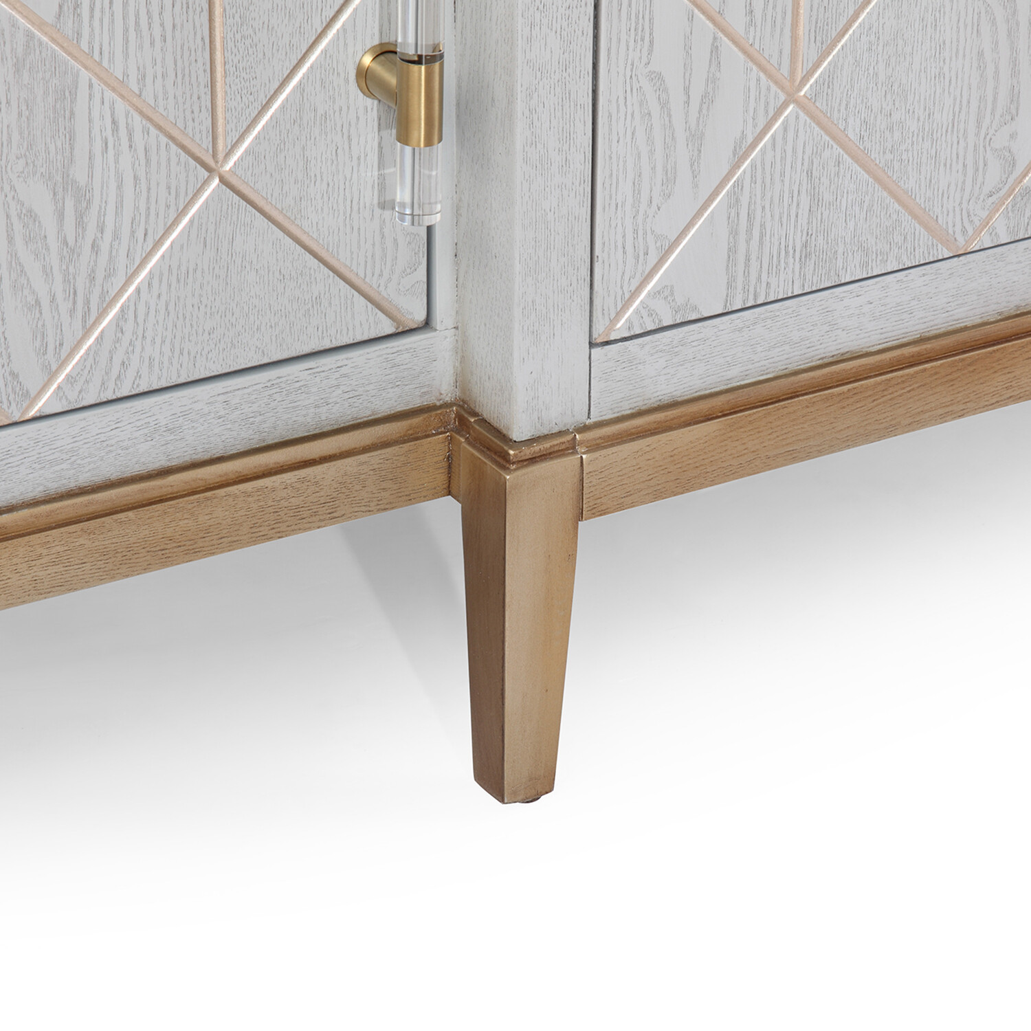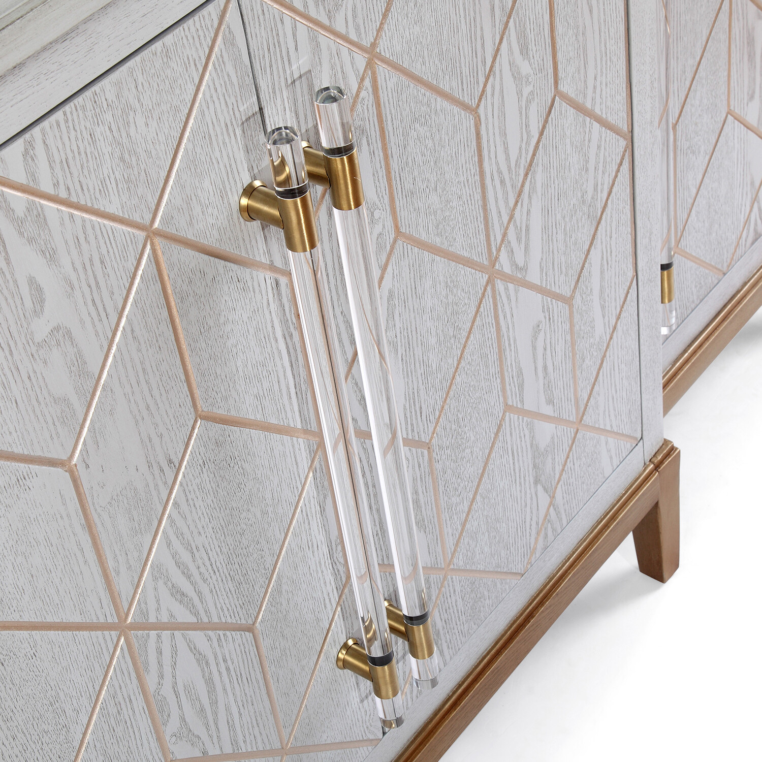 The Perrine Server is subtle and modern art deco at its best. Constructed with sturdy solid hardwoods and ash veneers, the Perrine collection features a soft gray graphite design with antique gold geometric inlays, and custom acrylic hardware with satin brass mounts to decorate the drawers.