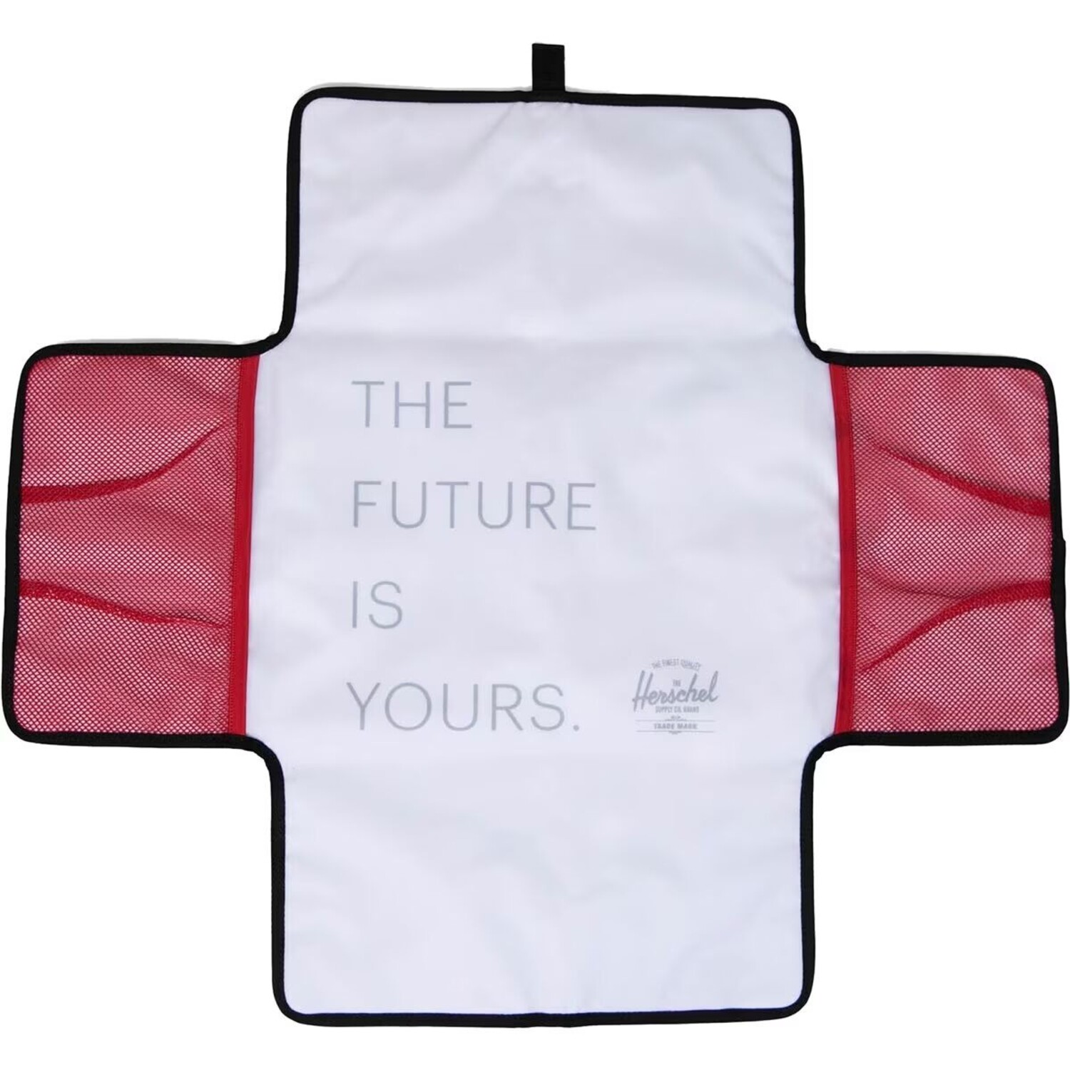 The Herschel Supply Strand Sprout Diaper Bag is crafted for parents on the move, offering flexible carry and storage for both you and your little one. Made from durable, 100% recycled 600D polyester, it features a signature striped liner and a fold‑out easy‑wipe changing mat with mesh wing pockets. Grab it by the reinforced handles, sling it over your shoulder with the removable padded strap, or clip it to your stroller using the unique buckle strap system.