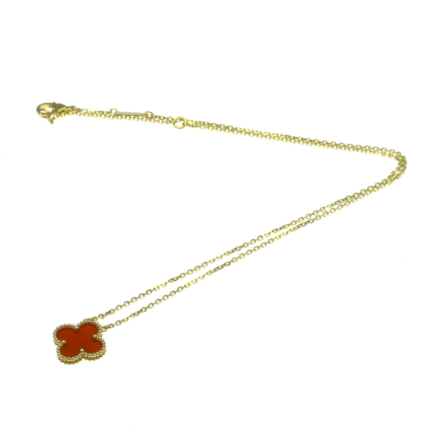 Van Cleef & Arpels // 18k Yellow Gold Vintage Alhambra Carnelian Pendant Necklace // 14.76"-16.33" // Store Display