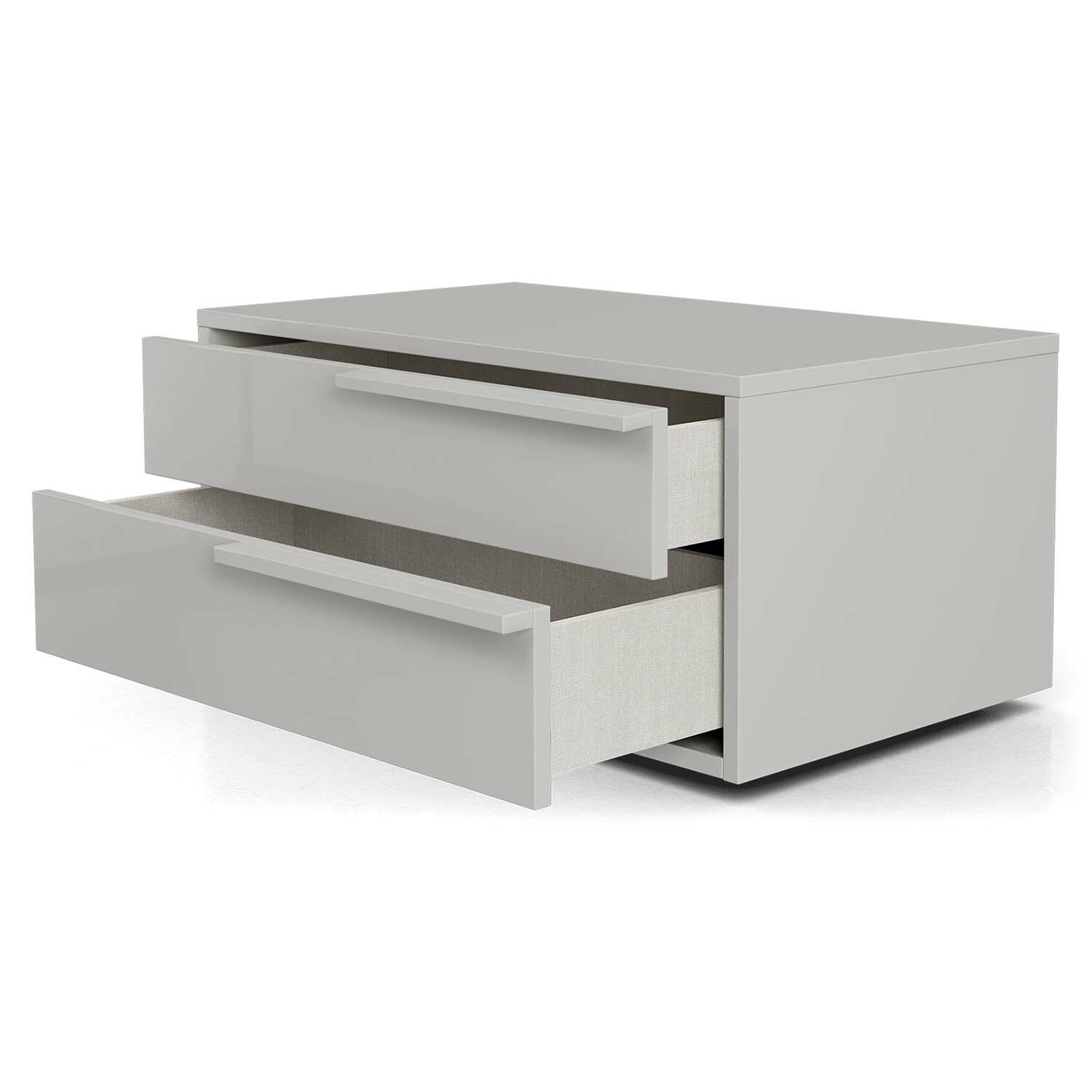 The Casabianca Home Alessio Set 2 nightstand in taupe high gloss offers a blend of adaptable style and comfort boasting a modern design that seamlessly complements your bedroom decor. This Alessio Set 2 nightstand features two soft close drawers adding elegance with functionality to your space. Made in Italy the Alessio Set 2 nightstand is manufactured using quality materials that will last for many years to come and is backed by our 1 Year limited warranty against manufacturer defects. Size: 30" W x 18" D x 16" H