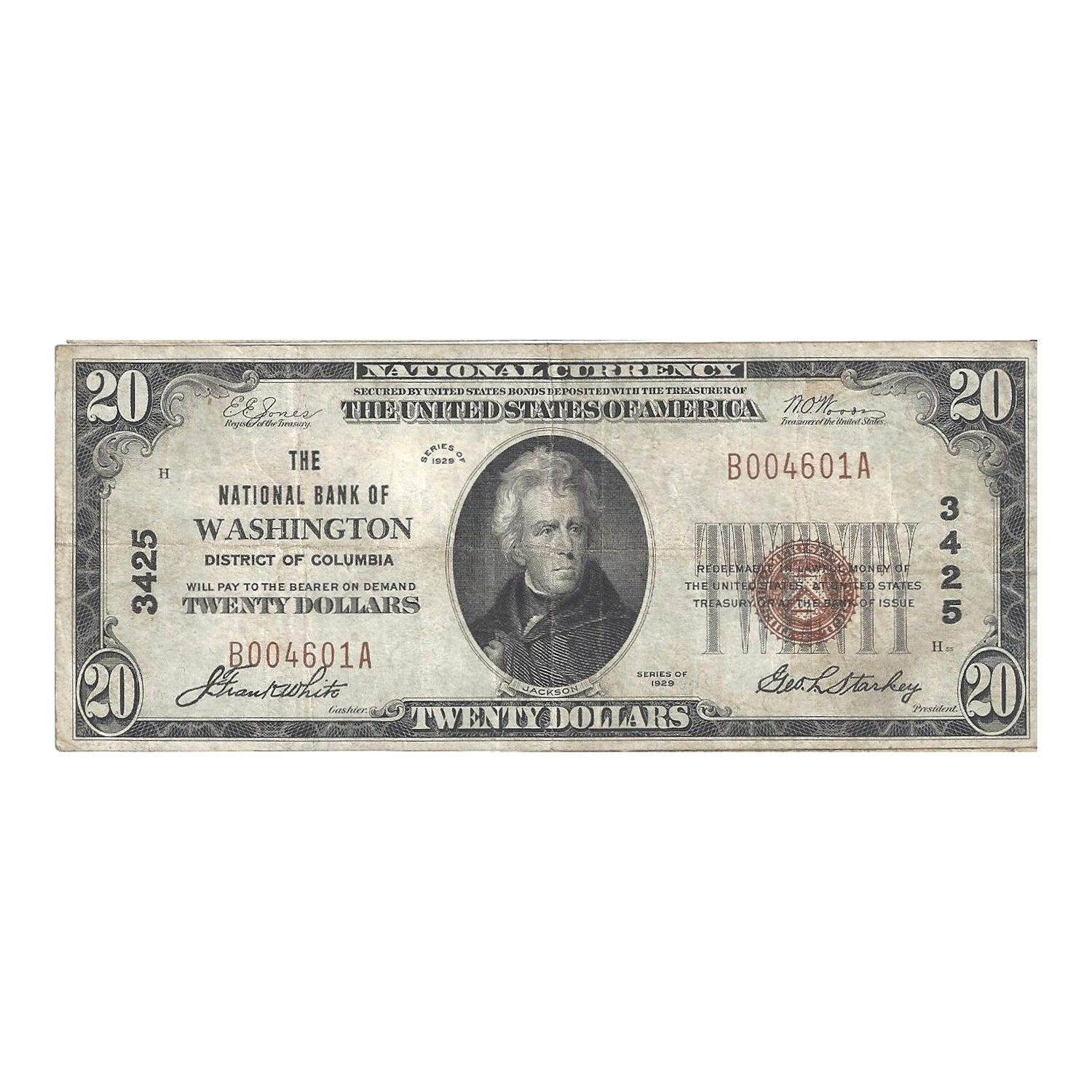 1929 $ 20 NATIONAL BANK OF WASHINGTON DISTRICT OF COLUMBIA # 601