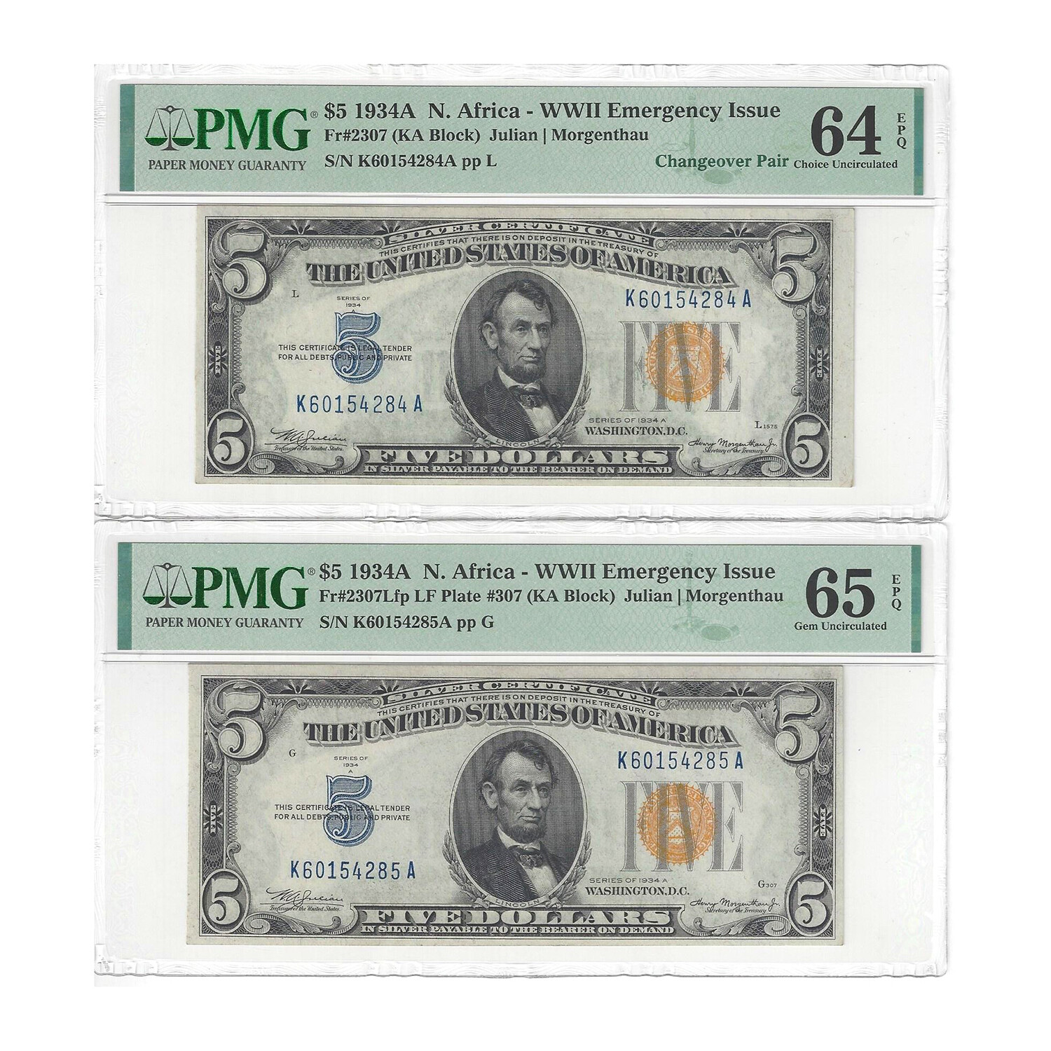 1934 A $ 5 North Africa WW II Emergency Issue CHANGEOVER PAIR
