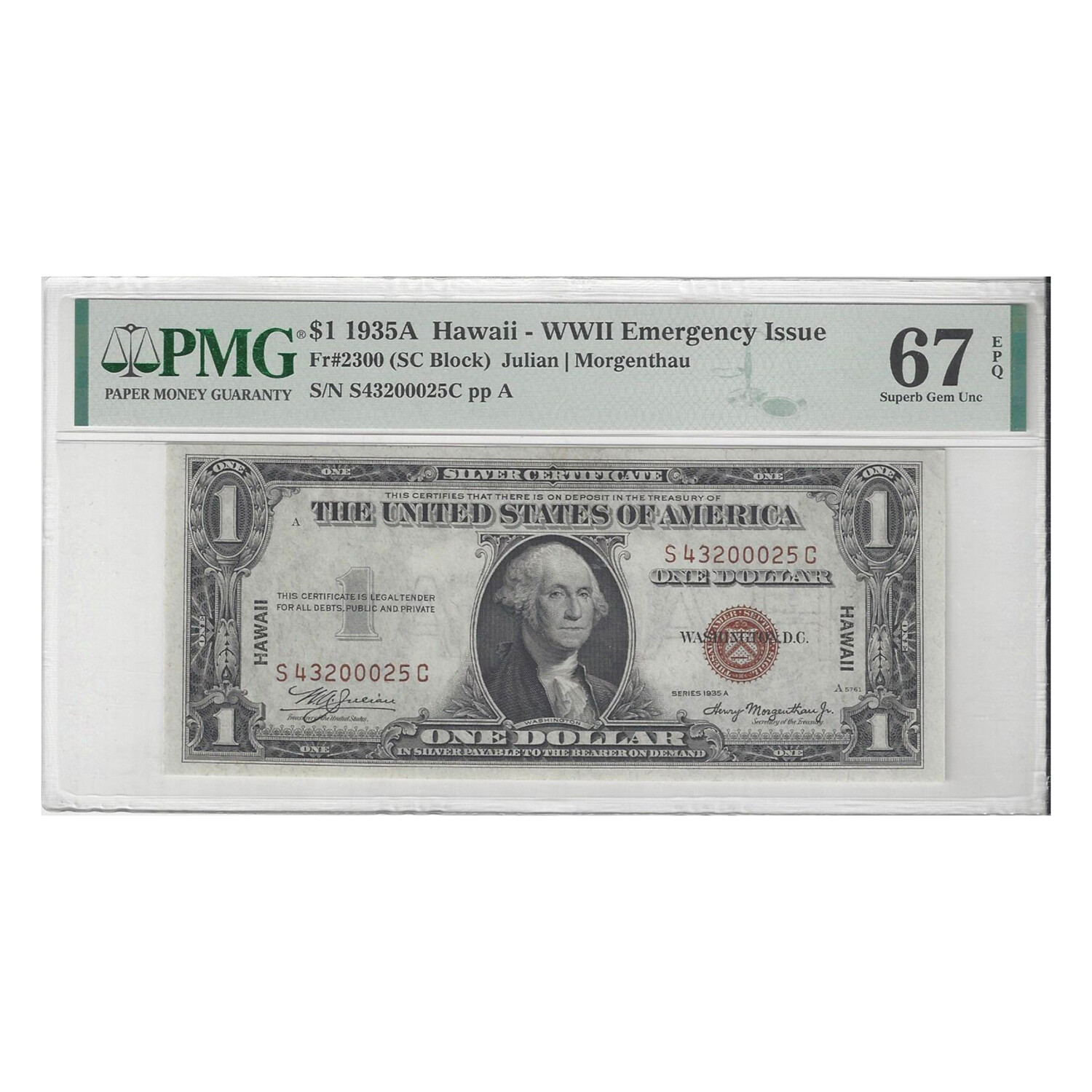 1935 A $ 1 HAWAII - WWII EMERGENCY ISSUE NOTE PMG 67 EPQ # 025