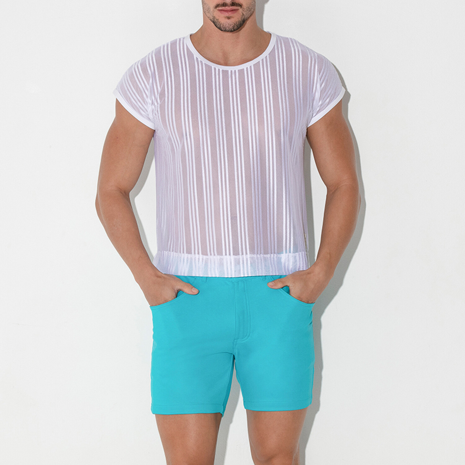 Mesh Pin Stripe T-Shirt // White