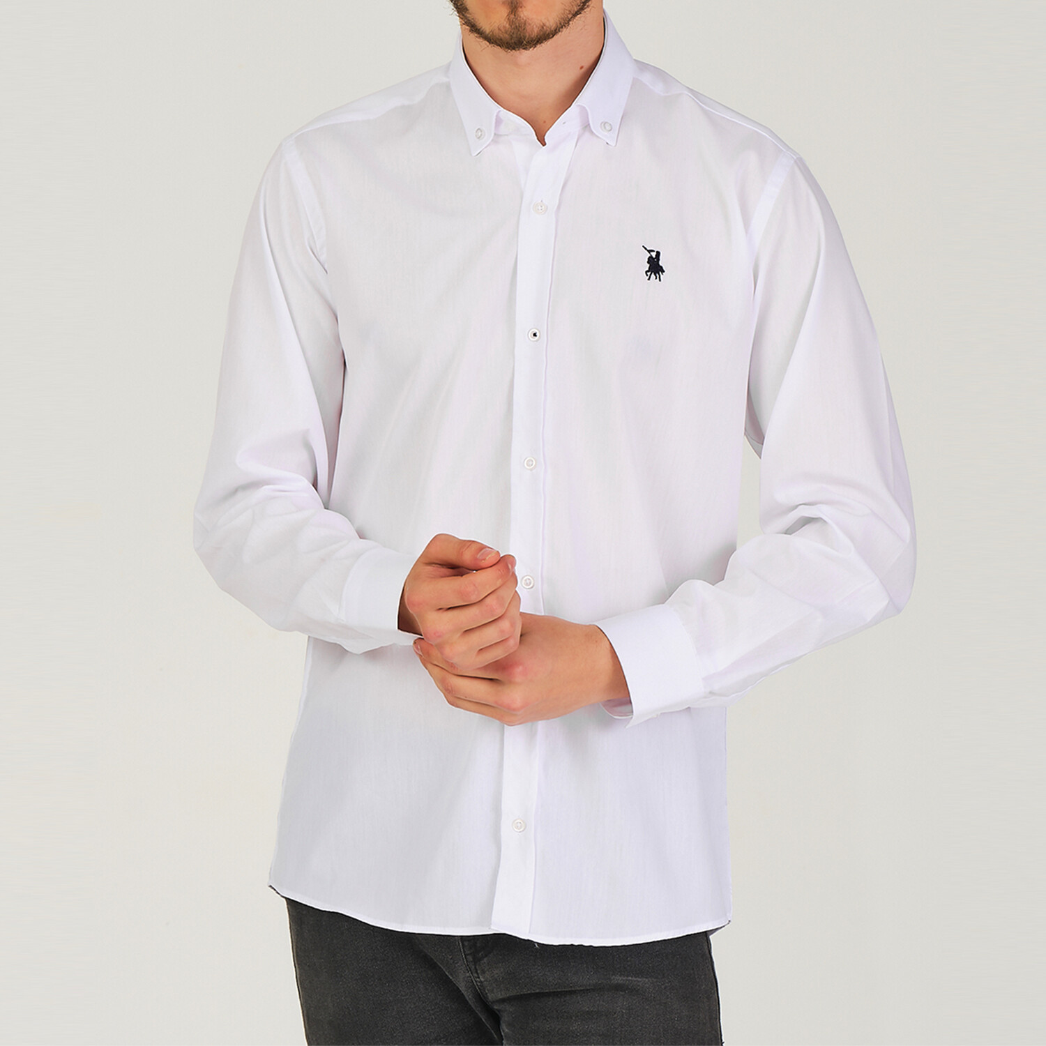 Button Up w/ Black Logo // White