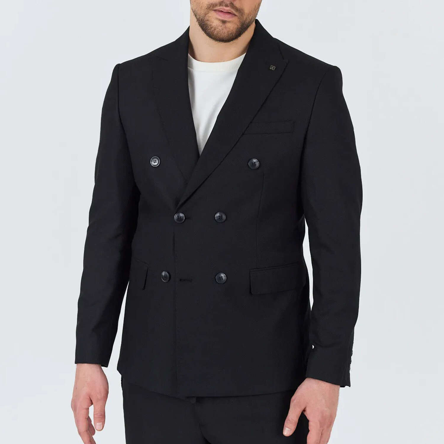 2-Piece Sharkskin Slim Fit Double Breasted Pointed Collar Suit // Black