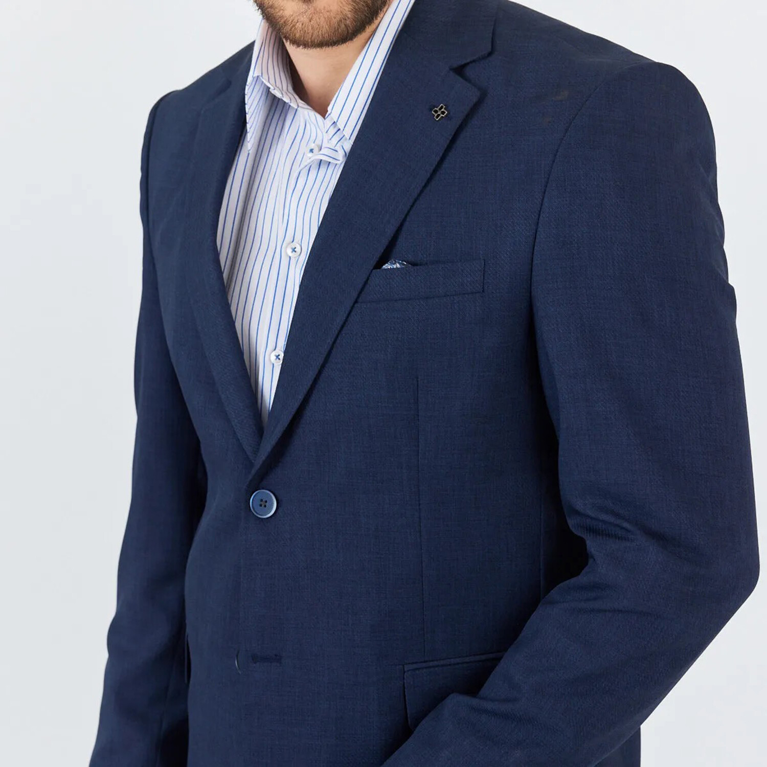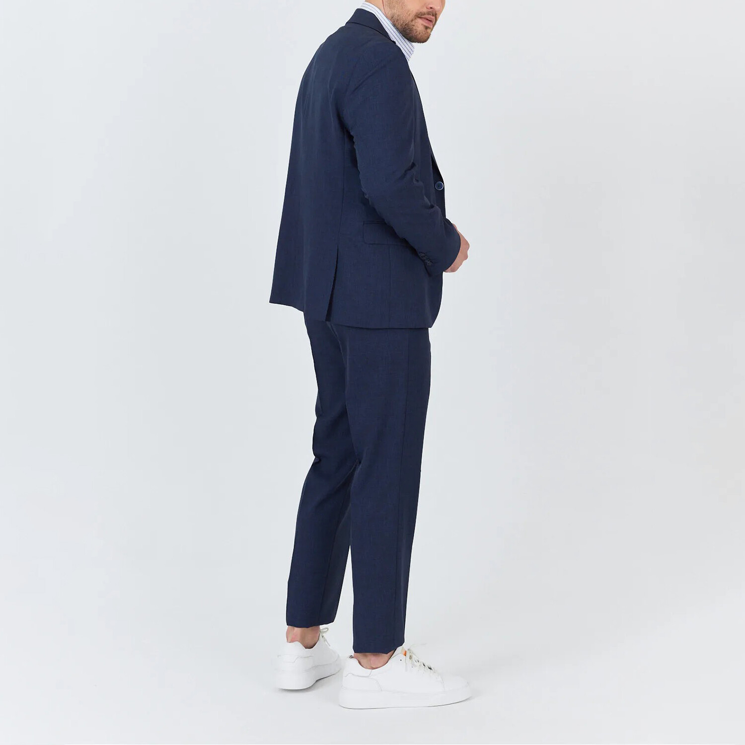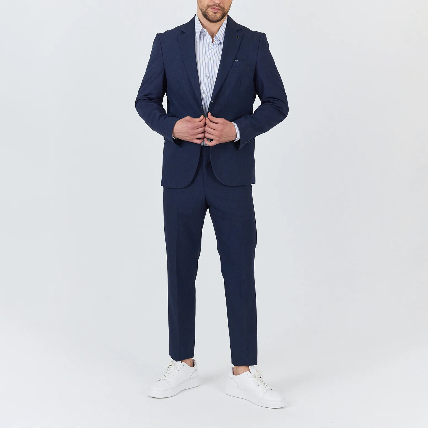 2-Piece Sharkskin Slim Fit Notch Collar Two Button Suit // Navy Blue