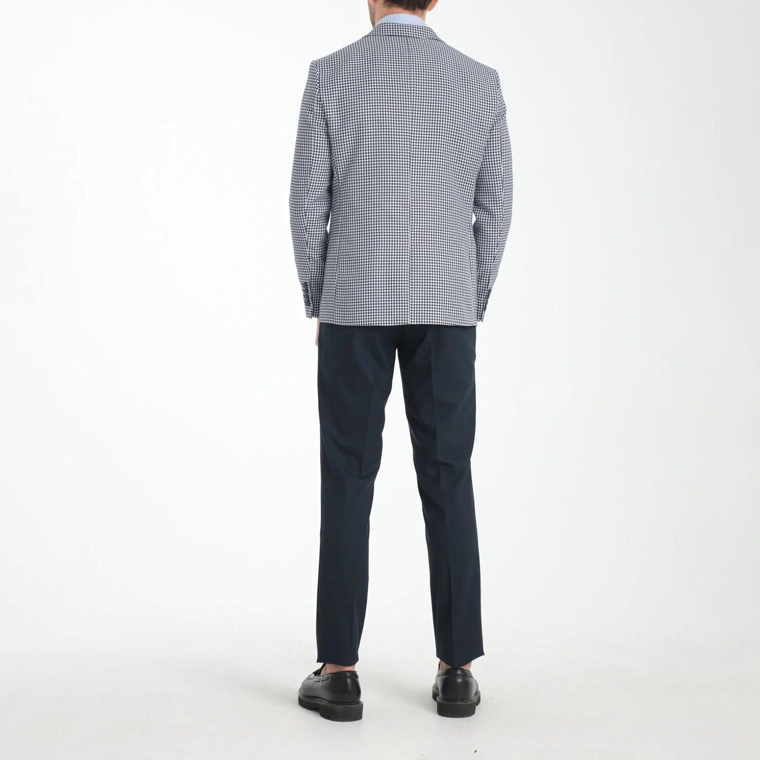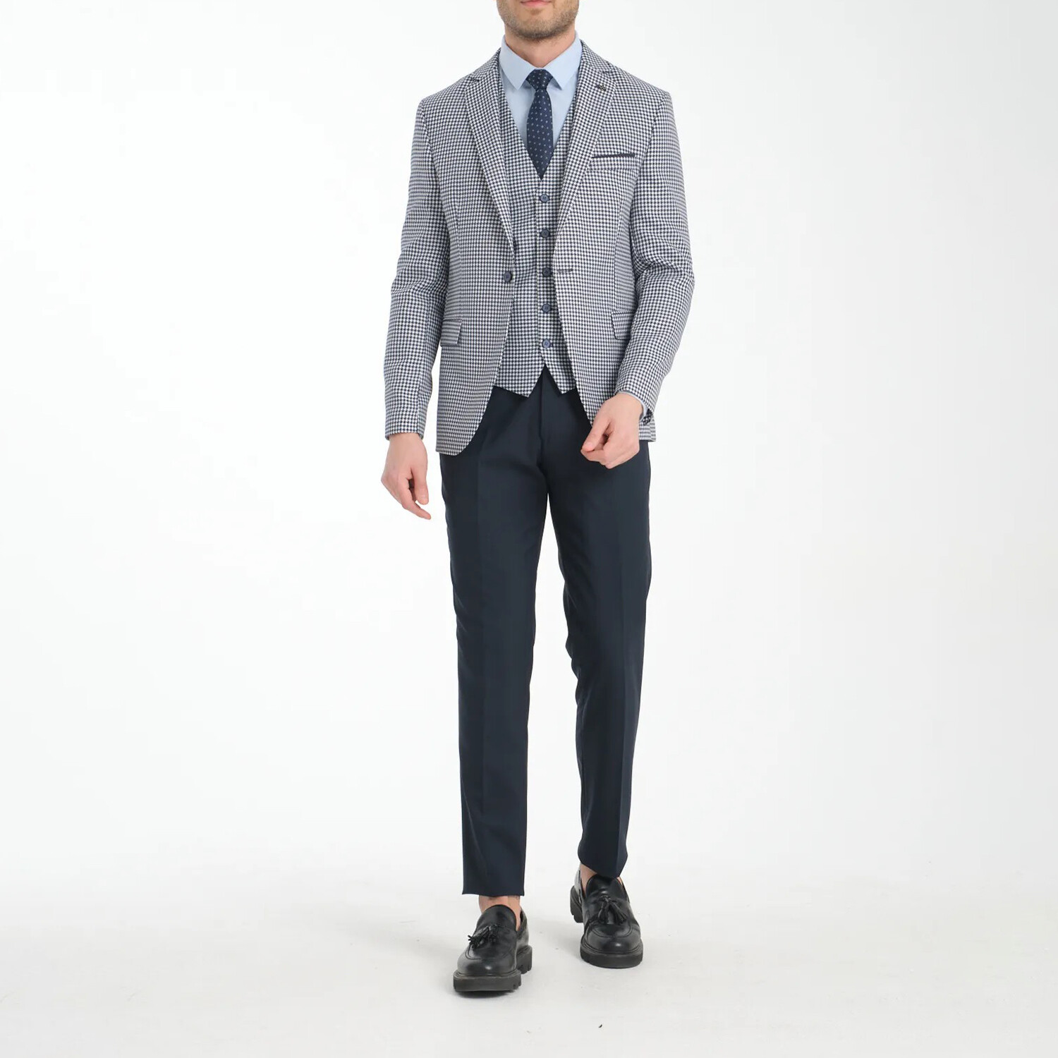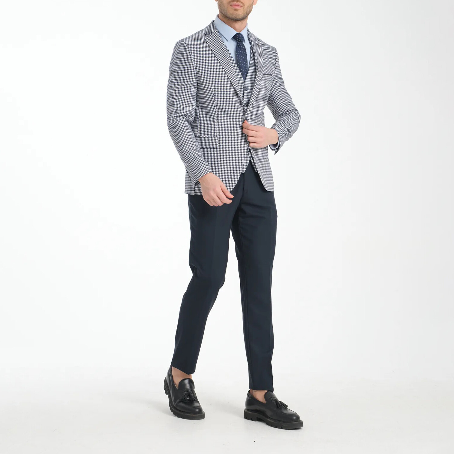3-Piece Nailshead Slim Fit Mono Collar Two Button Suit // Navy Blue + White
