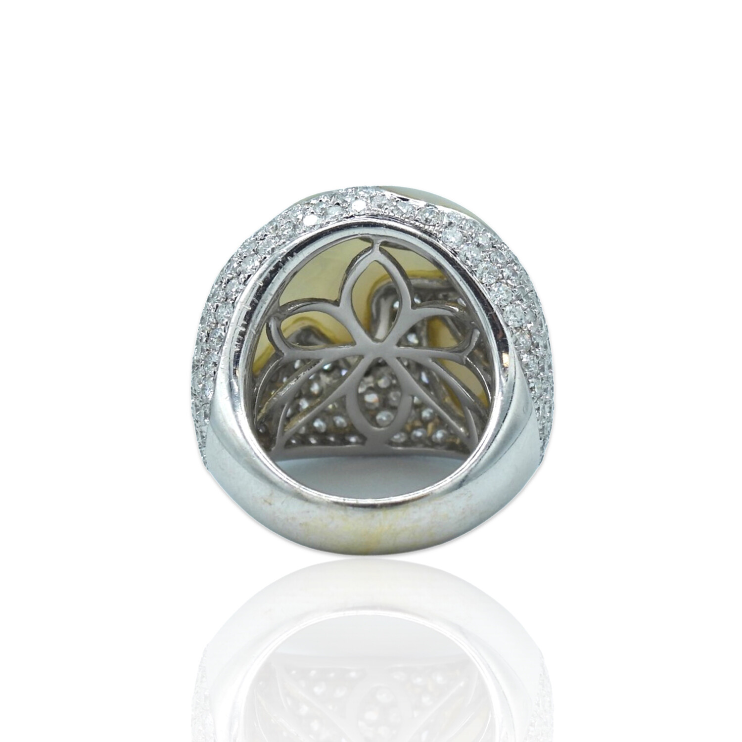 Estate // 18K White Gold Diamond + Mother of Pearl Ring // Ring Size: 5.25 // Pre-Owned