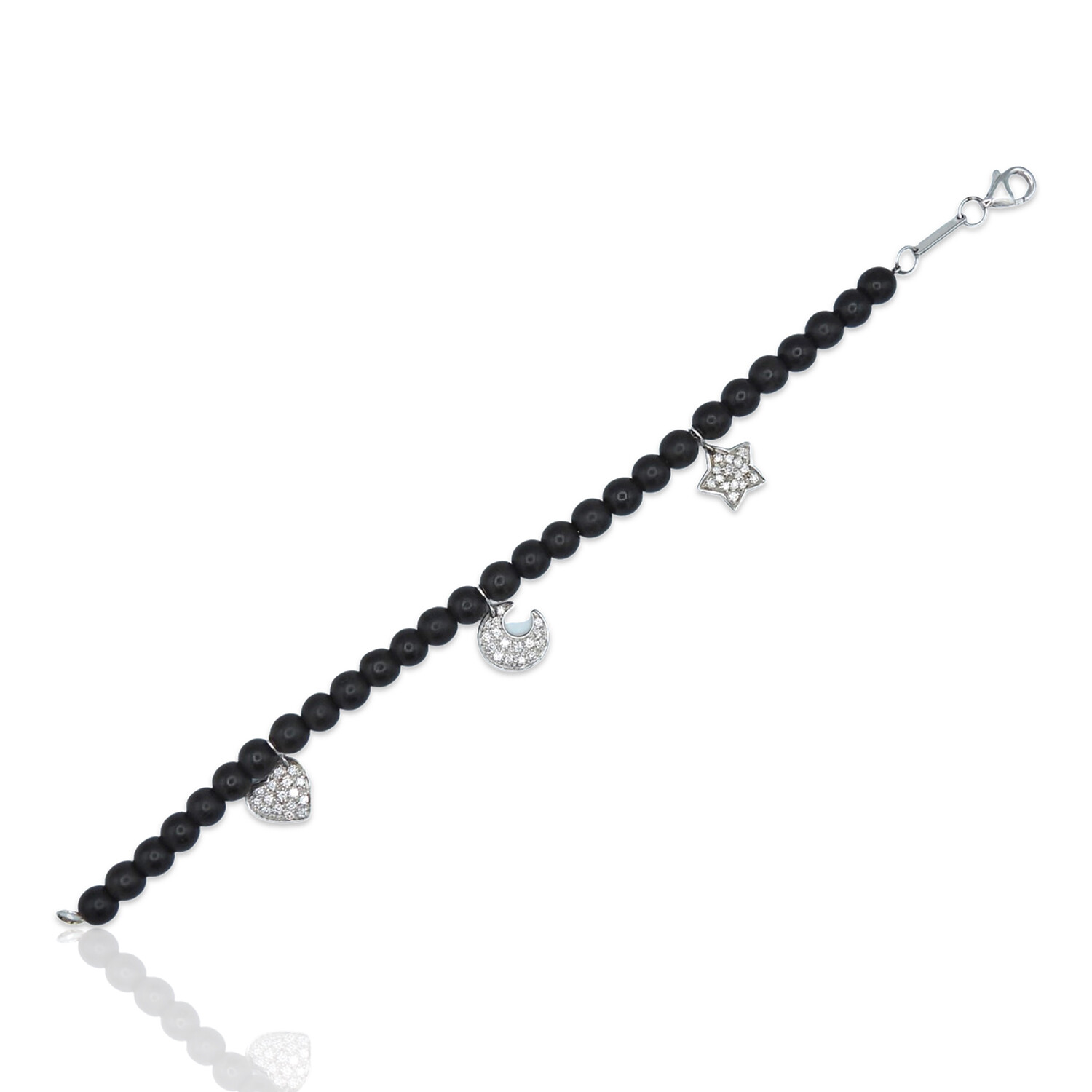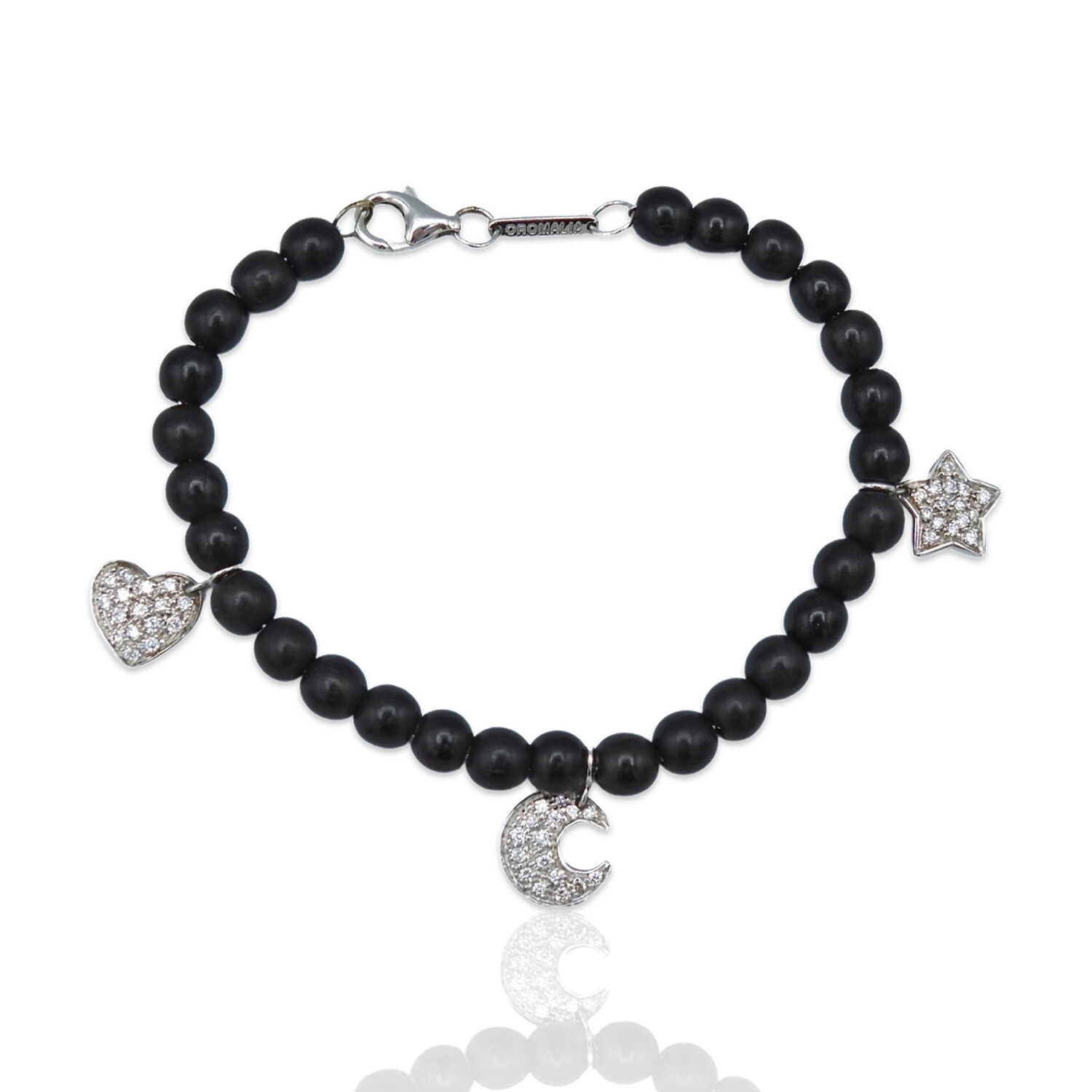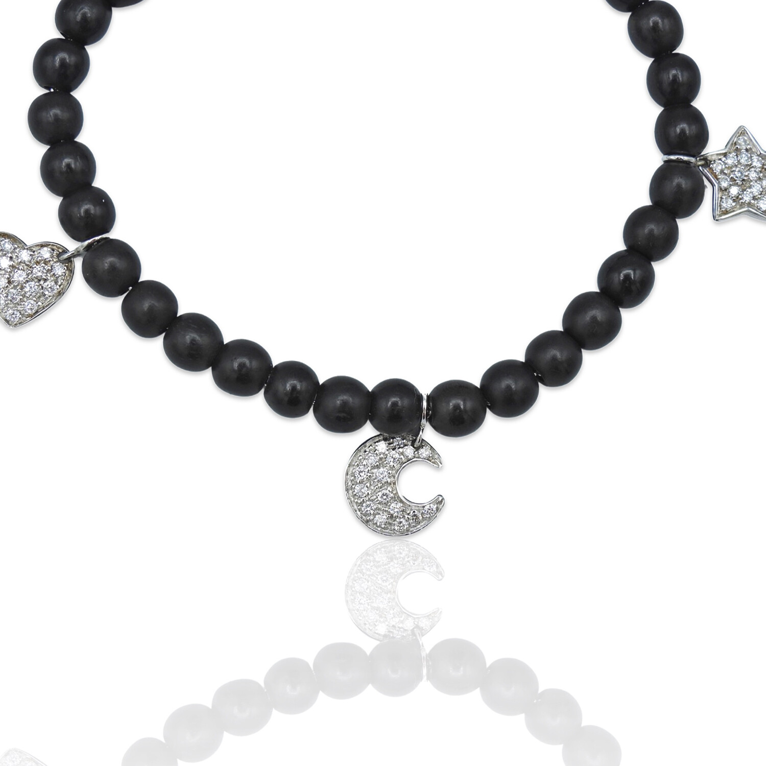 Oromailia // 18K White Gold Diamond + Black Wood Bracelet // 7" // Pre-Owned