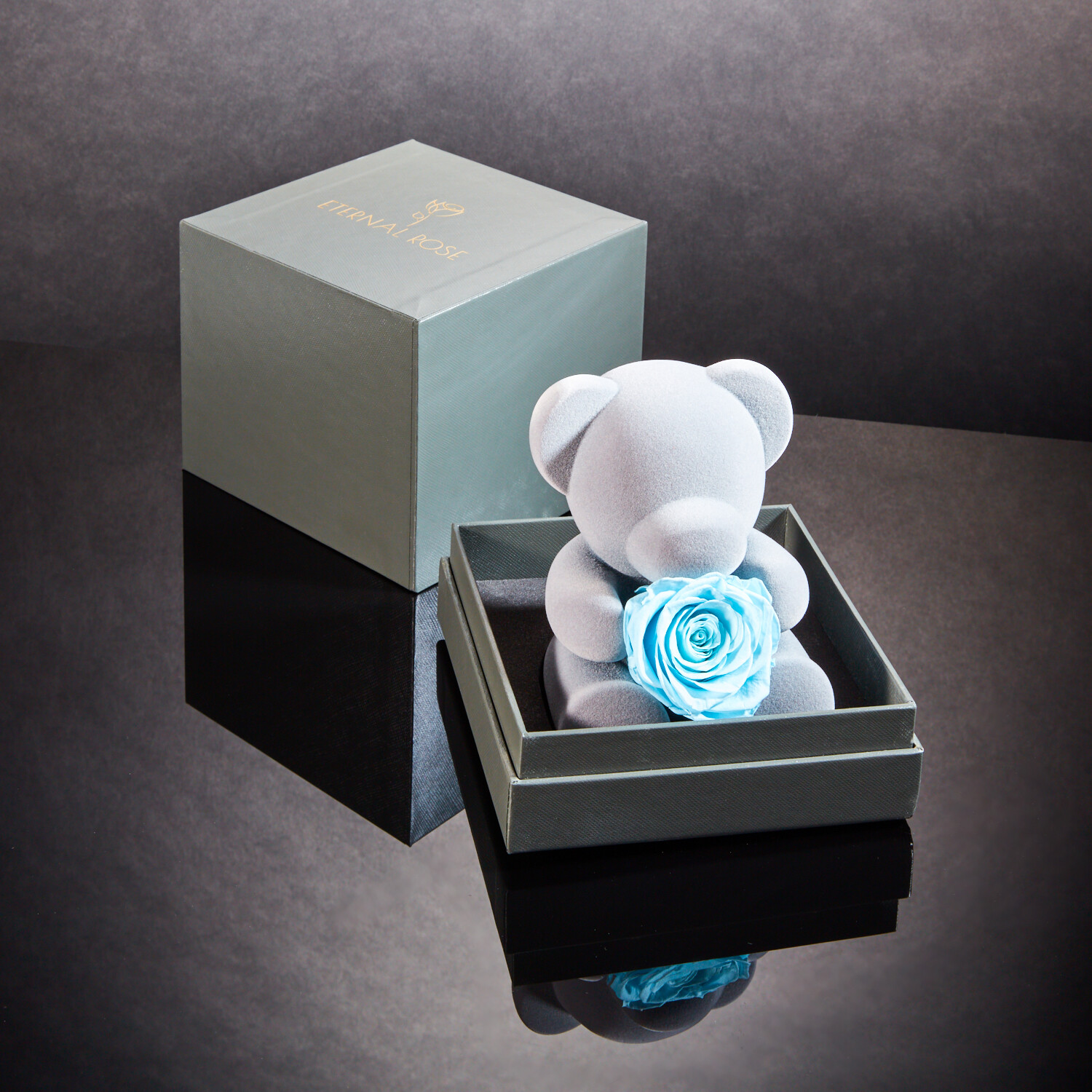 Every Eternal Rose Gift Bear includes a 6-7cm preserved rose and arrives in a black cardboard box with an acrylic lid to ensure a lovely and gift-friendly presentation. Each blossom in our Eternal Rose Gift Bear will remain in bloom for a year, so your thoughtful gesture will leave a lasting impression!