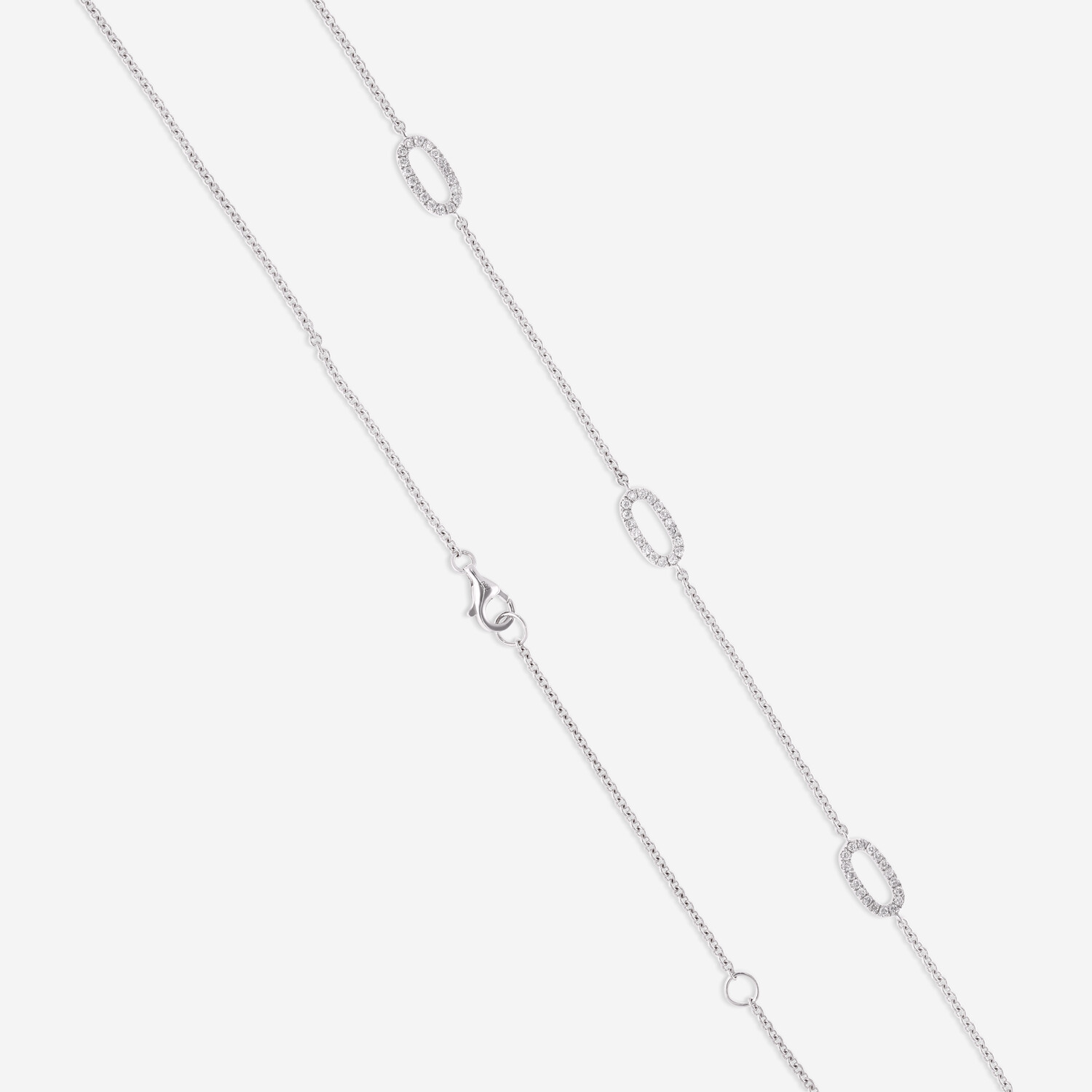 18K White Gold Diamond Station Necklace // 16"-18" // New