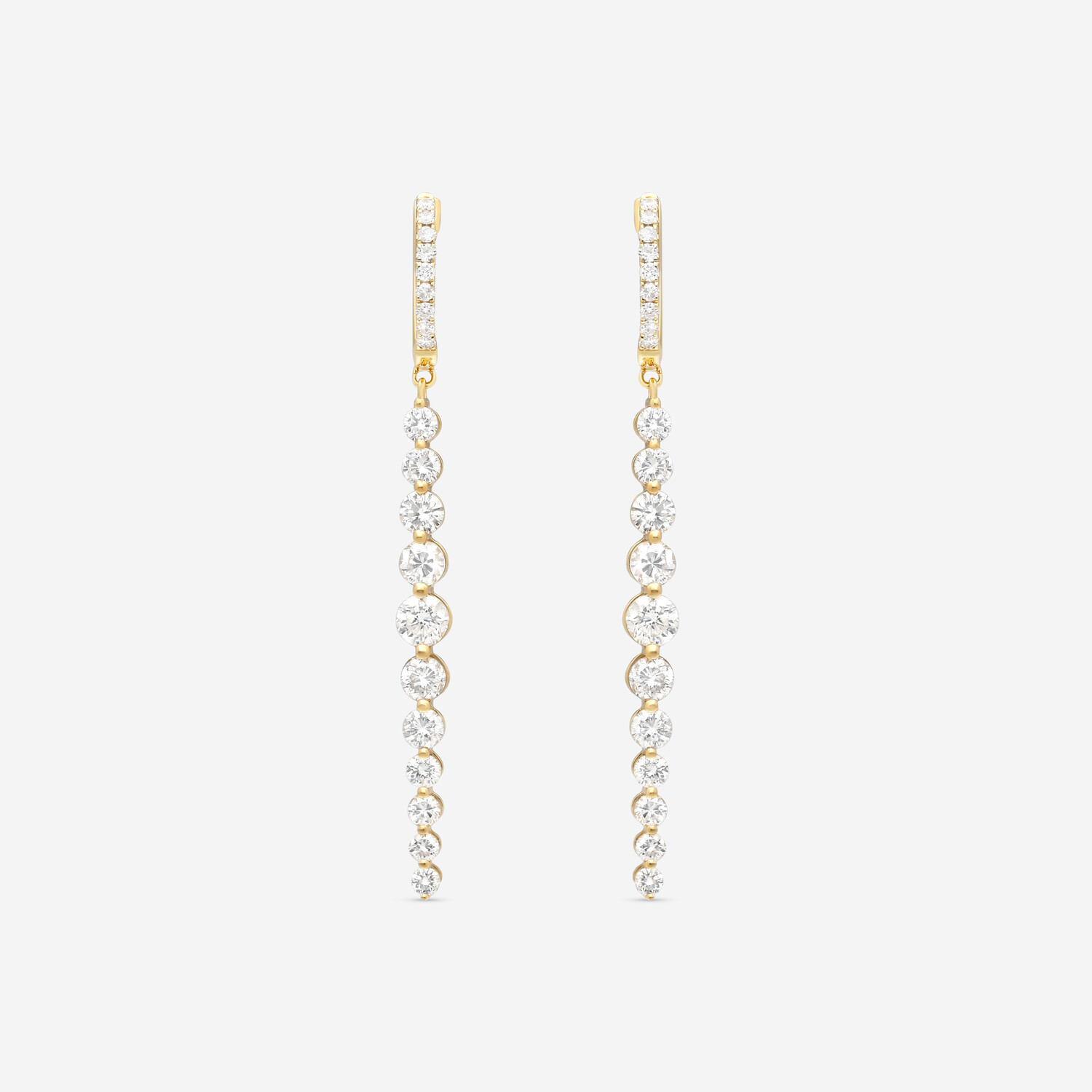 18K Yellow Gold Diamond Hoop-Drop Earrings // New