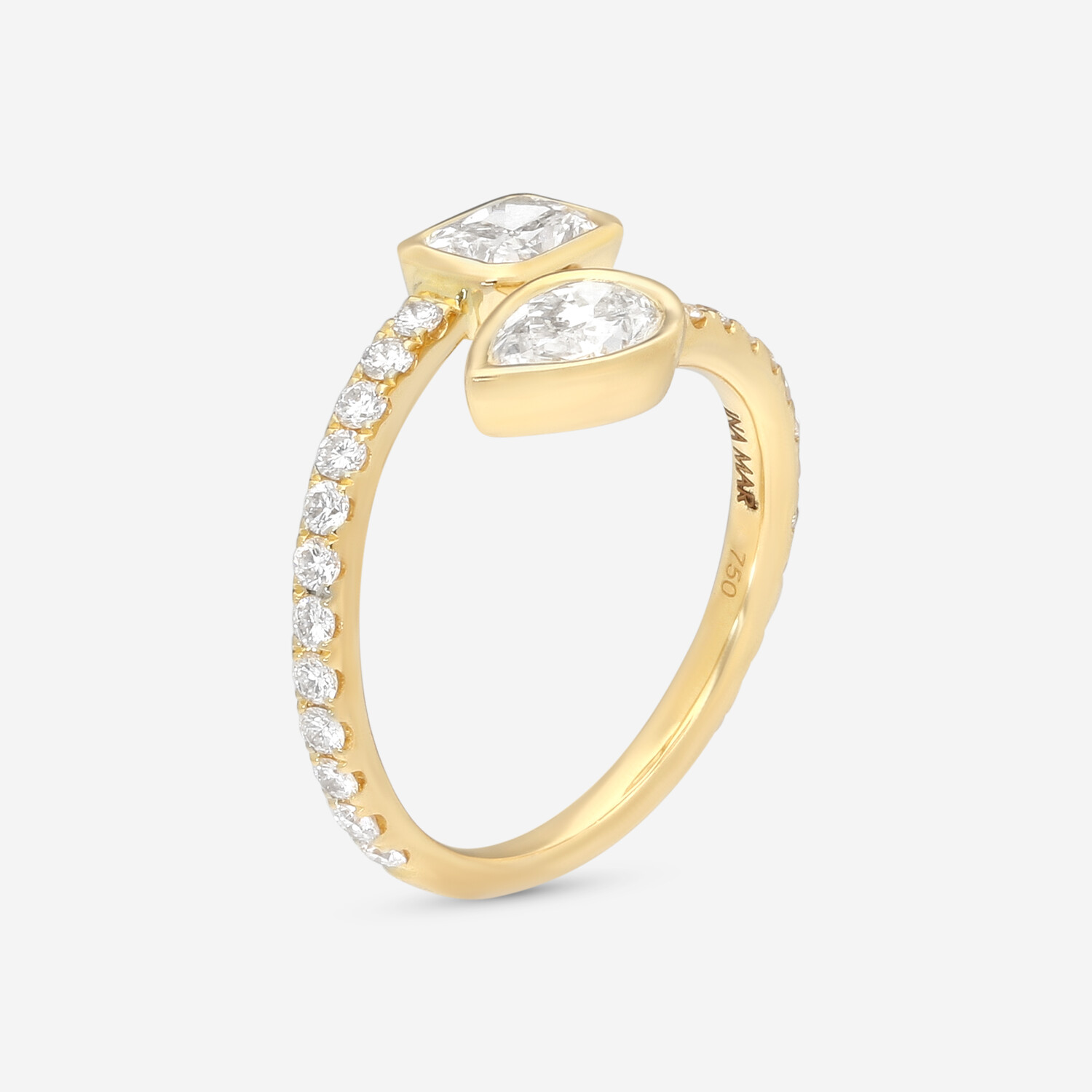 Indulge in the luxury of Ina Mar's 18K Yellow Gold Diamond Ring. This exquisite ring features a stunning arrangement of sparkling diamonds, each set to enhance its radiant charm. The elegant design and superior craftsmanship make it a sophisticated choice for any occasion, adding a touch of timeless beauty to your collection.