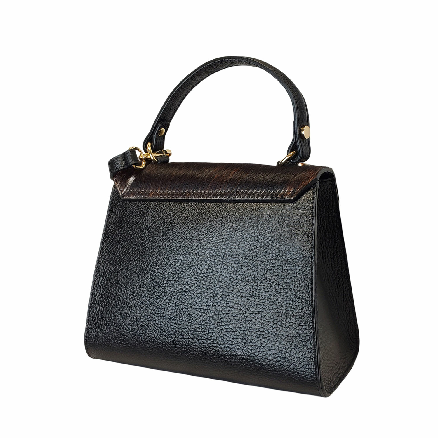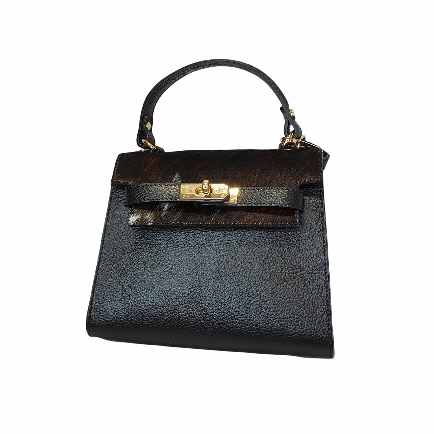 The Liana Small Handbag & Cross Body pairs rich textures with refined detailing in a compact silhouette. Crafted from genuine cowhide leather with a fur accent, it features a sleek front flap and gold turn lock accessory for a polished finish. Whether carried by the handle or worn crossbody, it’s a versatile piece with just the right amount of edge.