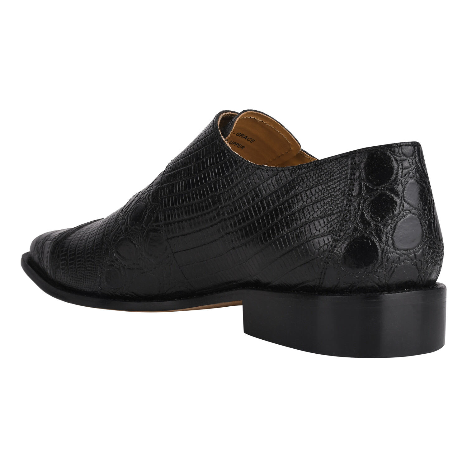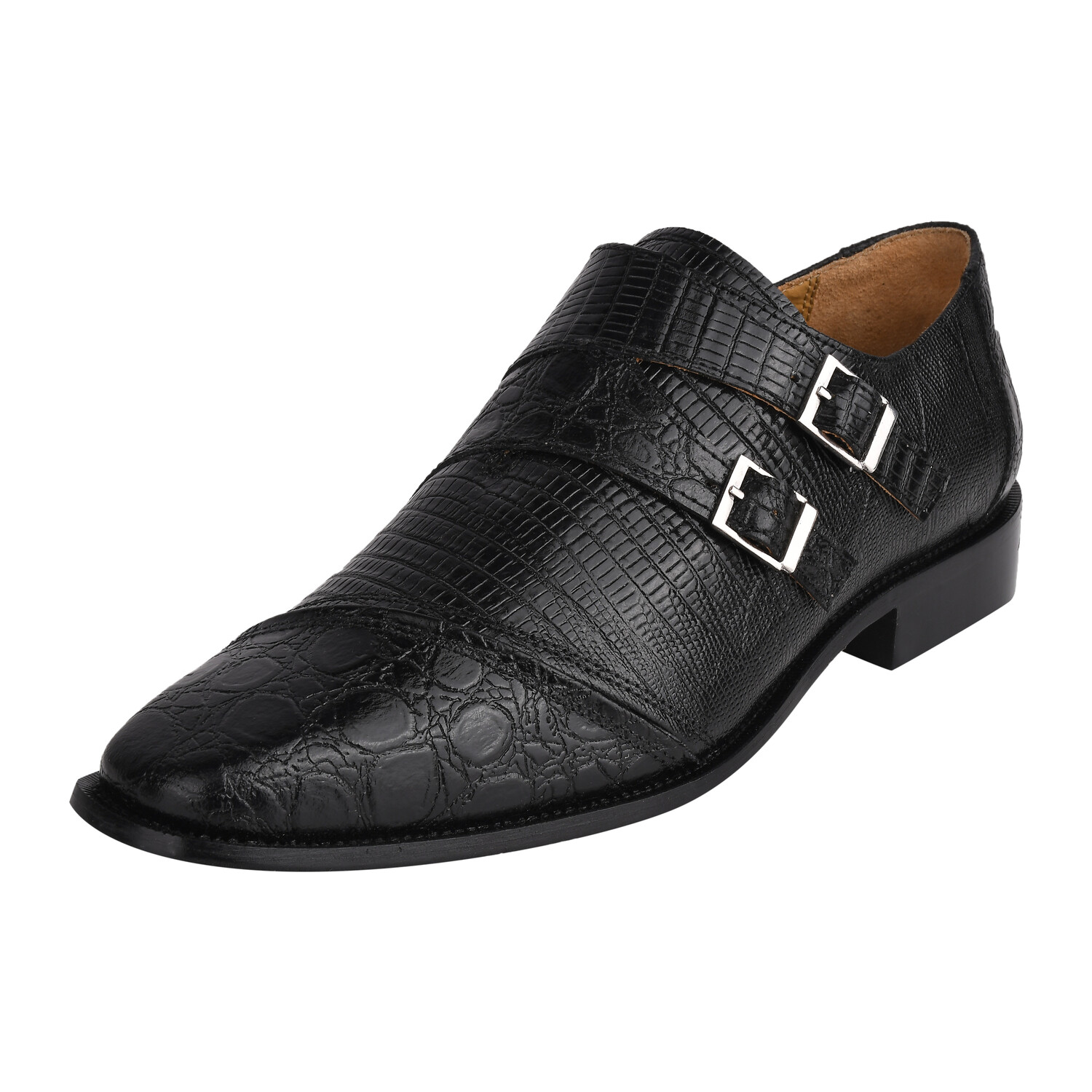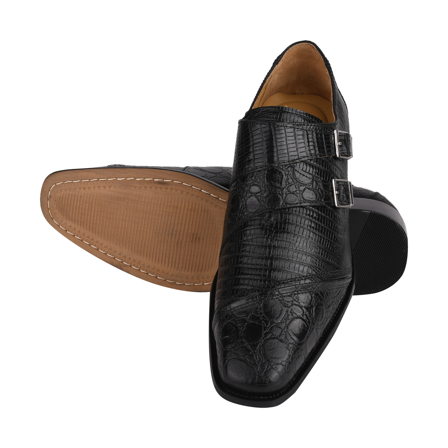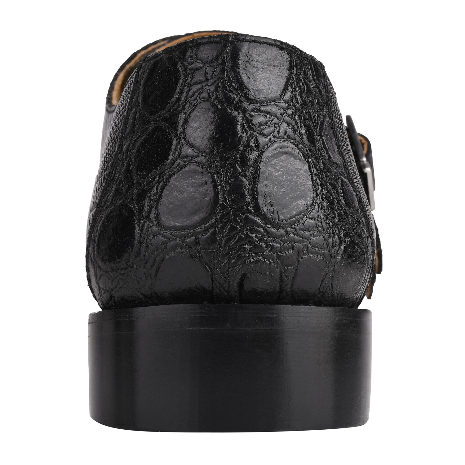 Grace // Leather Lizard Textured Double Monk Strap // Black