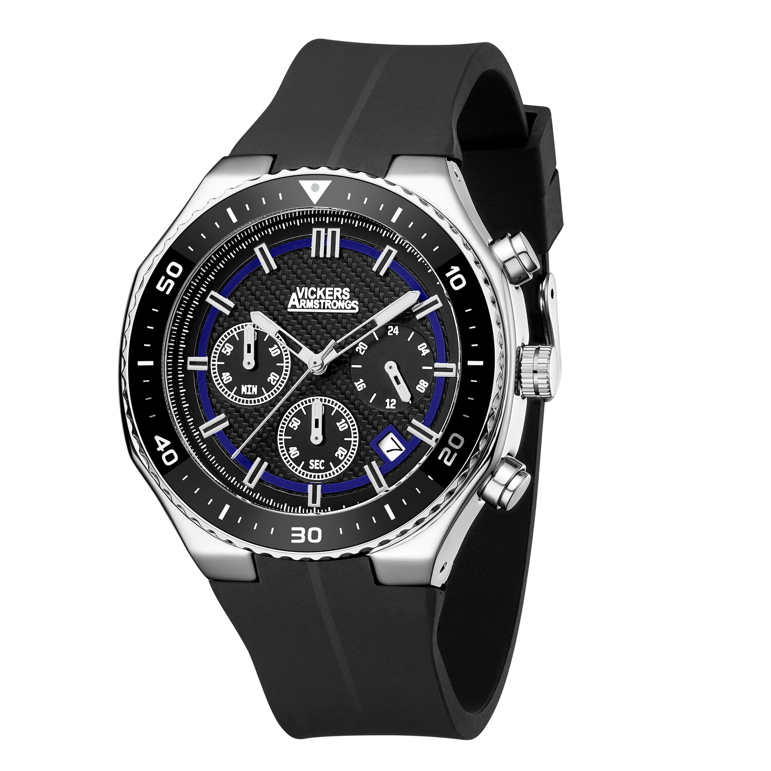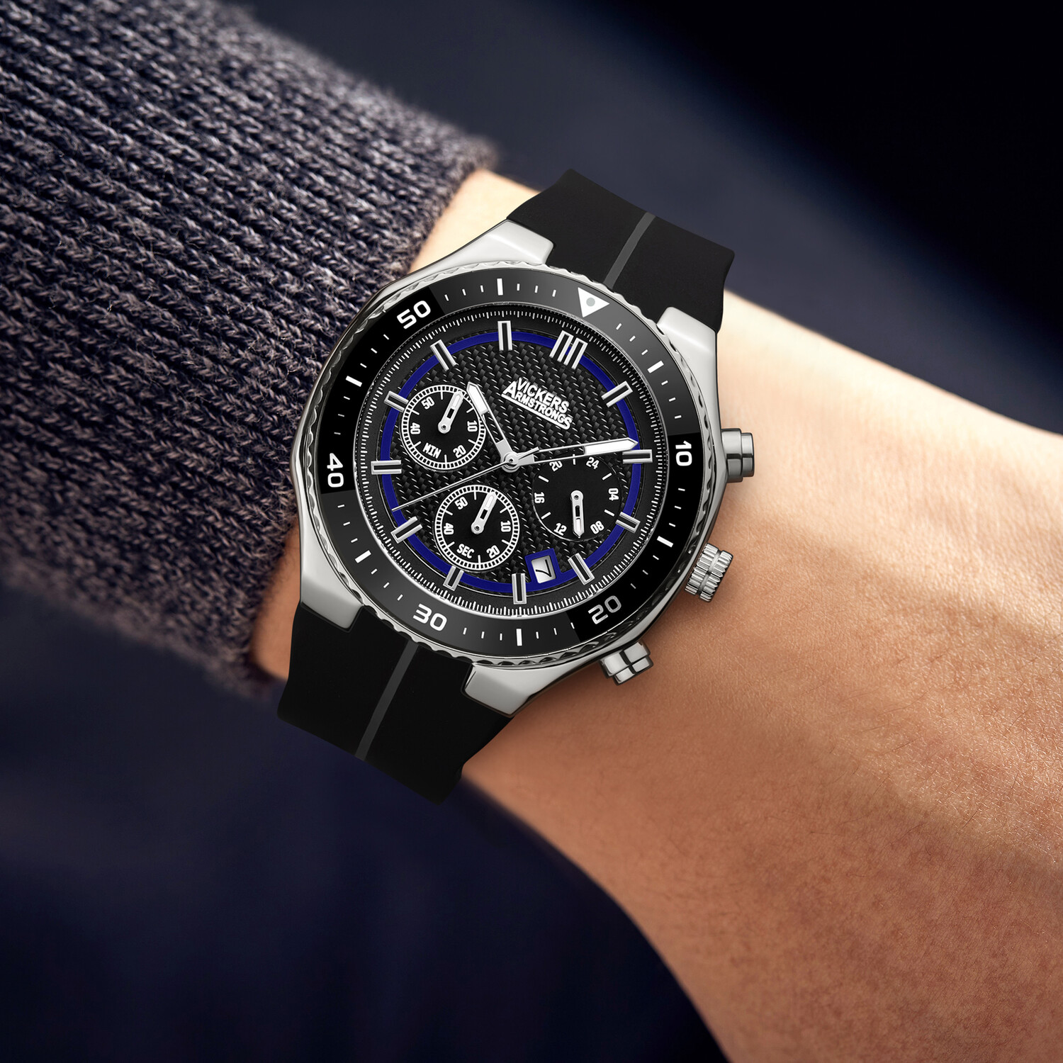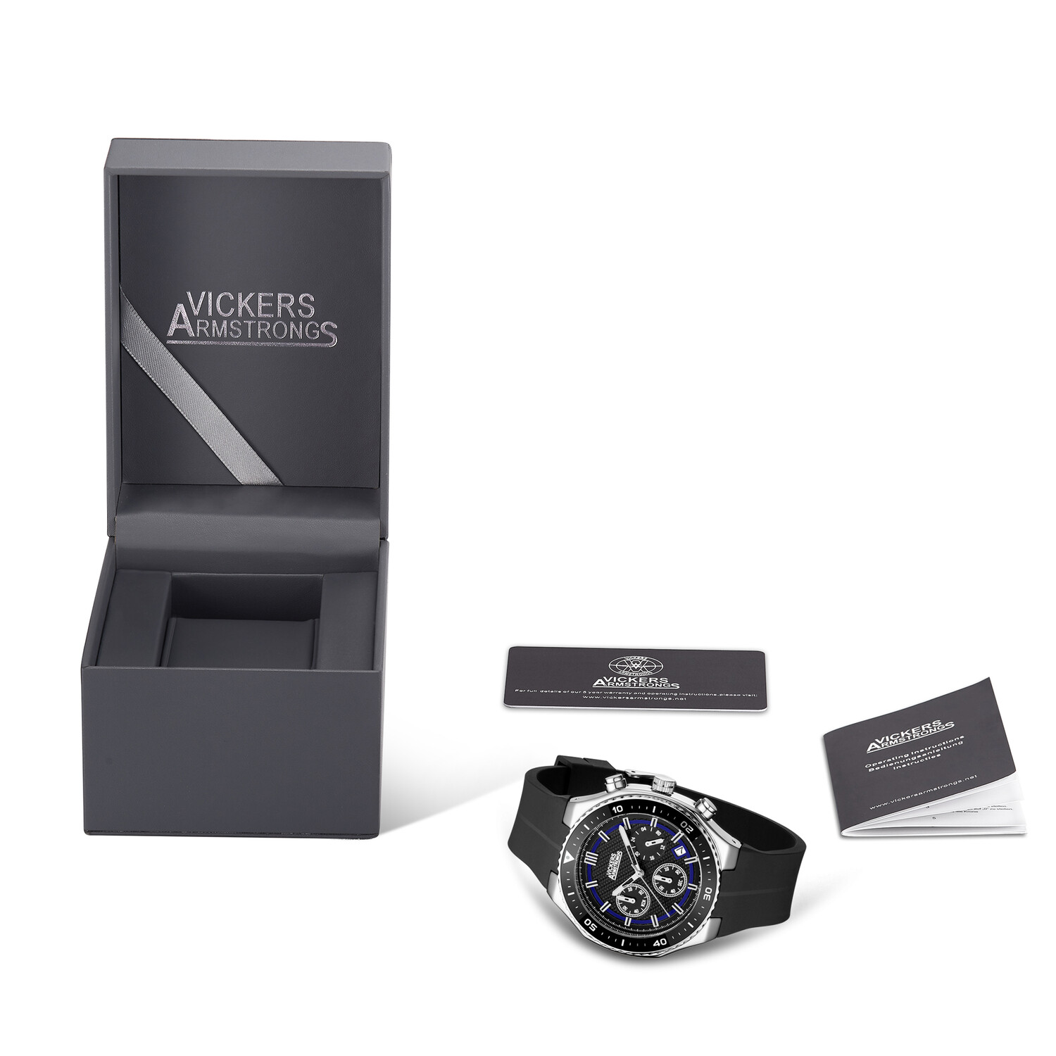 The Vickers Armstrong logo-engraved stainless steel caseback offers a final mark of precision. Paired with a smoke-black silicone strap built for comfort and wear, this timepiece captures the strength and utility of Hadfield’s legacy, a tribute fitting for a brand rooted in industrial resilience and innovation.