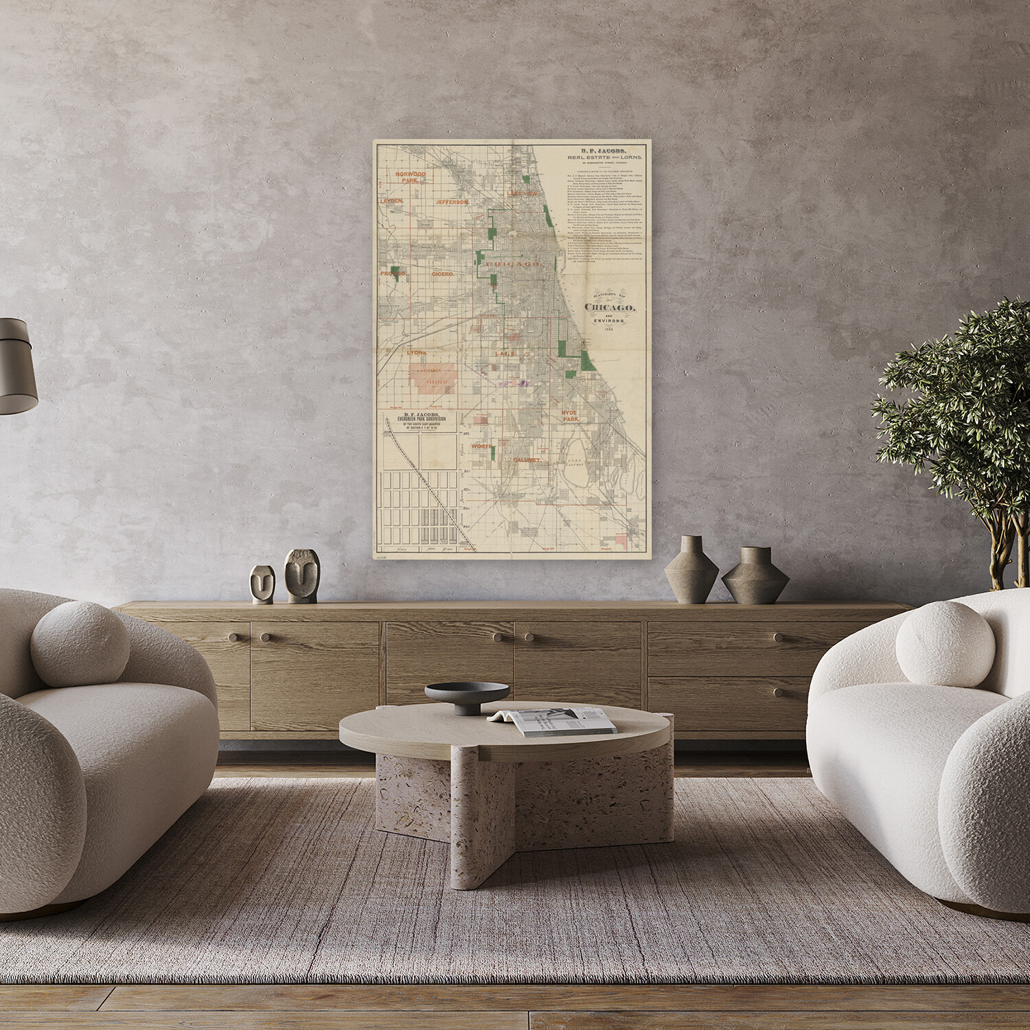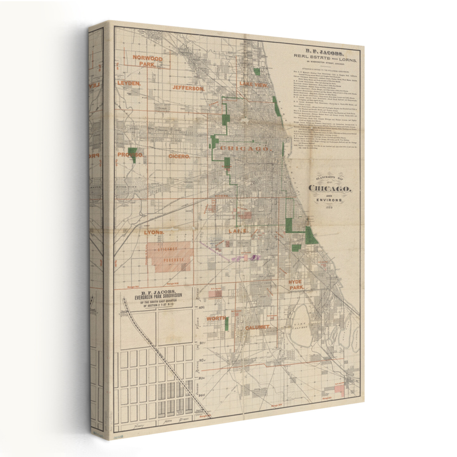 Chicago 1889 Map Canvas Art Print by Wild Apple Portfolio