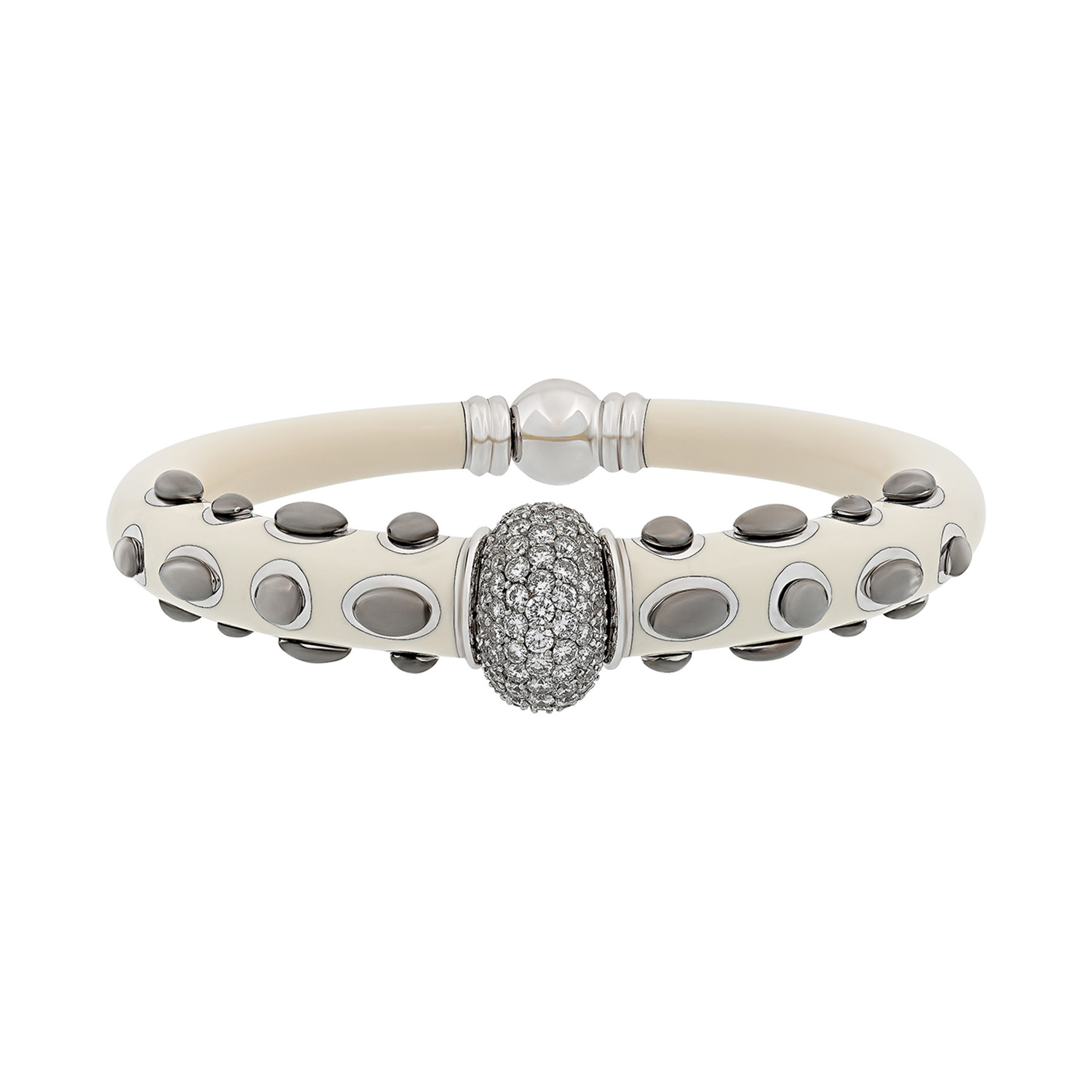 Nouvelle Bague Kenya 18k White Gold Diamond + White Enamel Bangle Bracelet