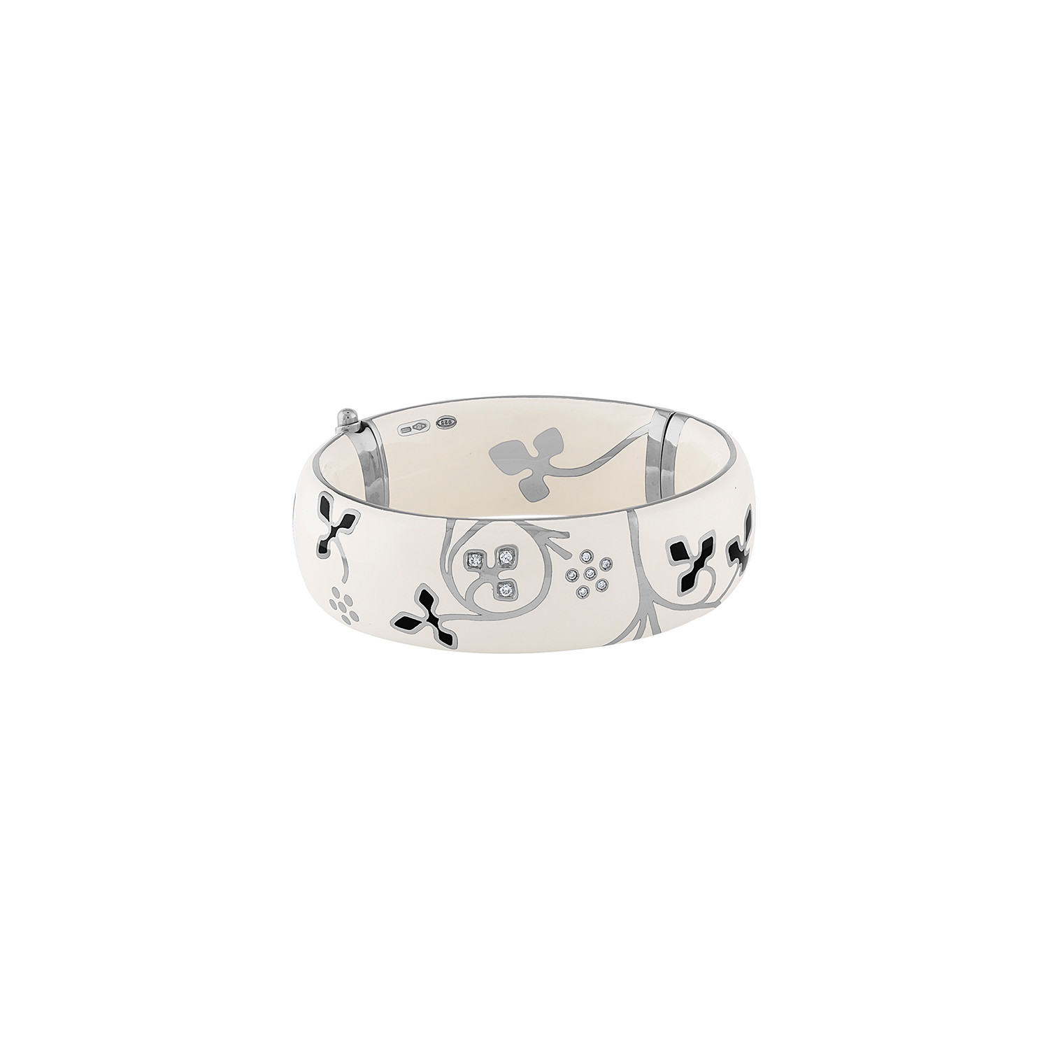 Nouvelle Bague Semi d'Amore 18k White Gold Diamond + White Enamel Bangle Bracelet