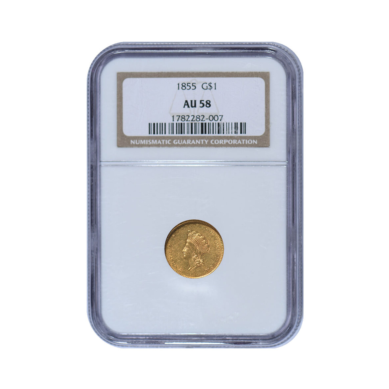 1855 $1 Gold Piece Type 2 // NGC Certified AU58 // Deluxe Collector's Pouch