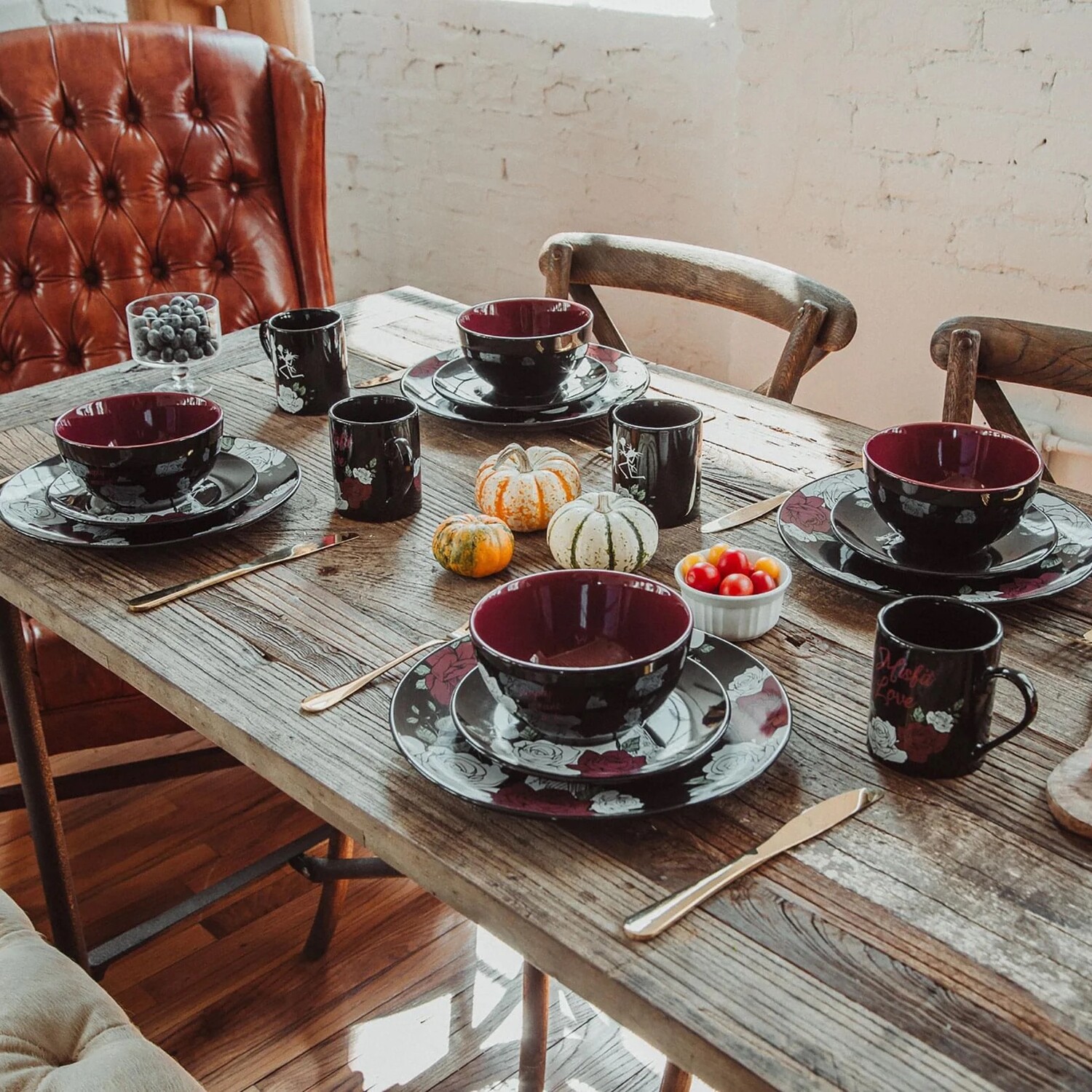 Disney Nightmare Before Christmas Jack and Sally Roses 16-Piece Dinnerware Set