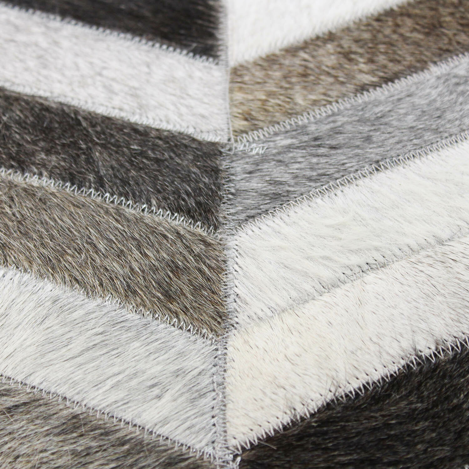 Add some rustic charm to your space with this collection by Solo Rugs. Each area rug is crafted from strips of cowhide, sewn together in linear patterns, and finished with felt backing. The natural variations of the hides add warmth and depth to the geometric motifs and give each rug a beauty of its own. The rugged, natural appeal is juxtaposed by the precision and detail in craftsmanship, creating a look that is reminiscent of a modern mountain cabin with refined, contemporary flair.