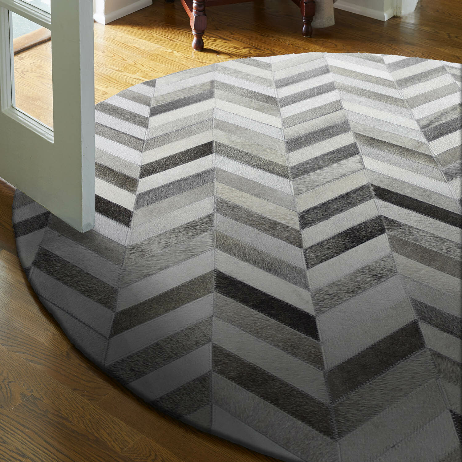 Ela Hand Stitched Modern Chevron Round Rug // Gray