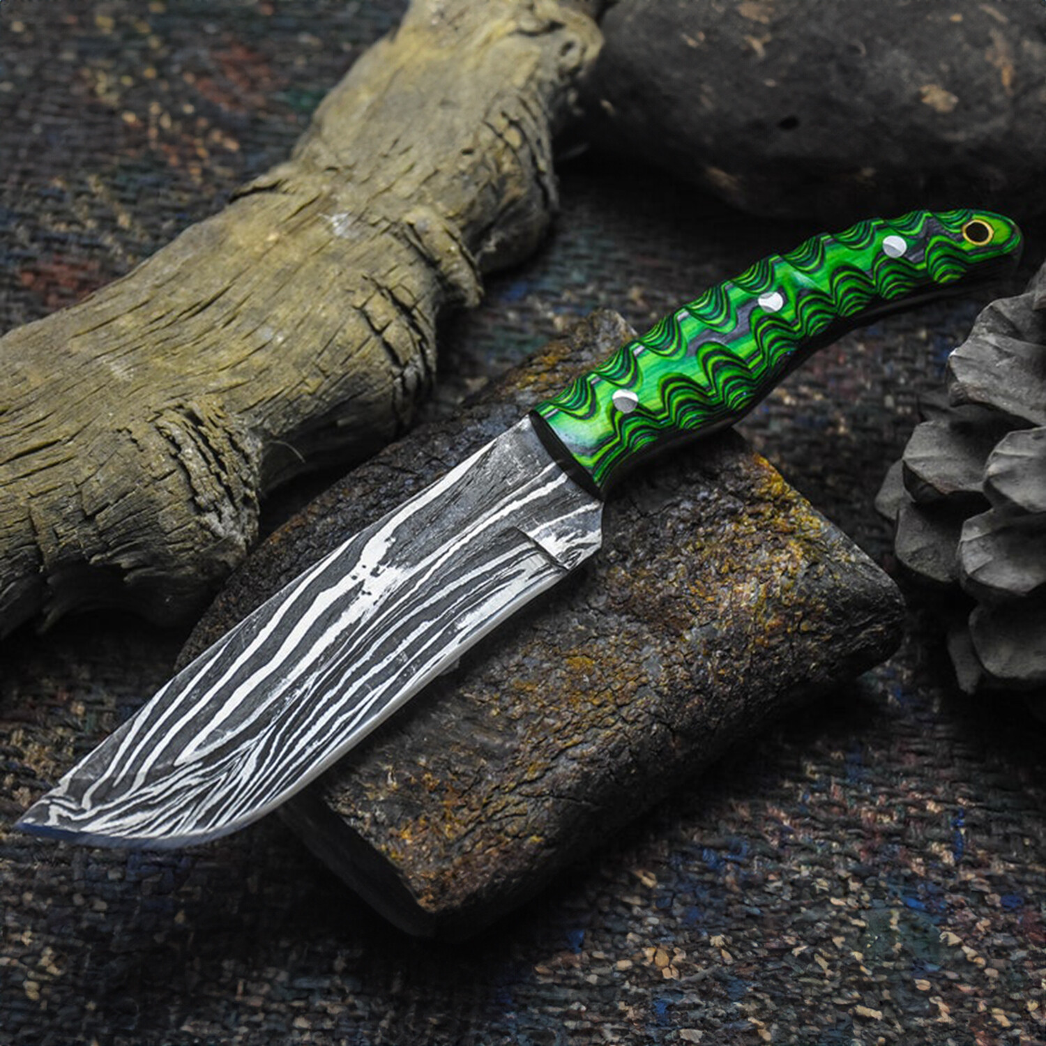 The Strike Fury // Drop Point // Sculptured Green & Black Dense Wood