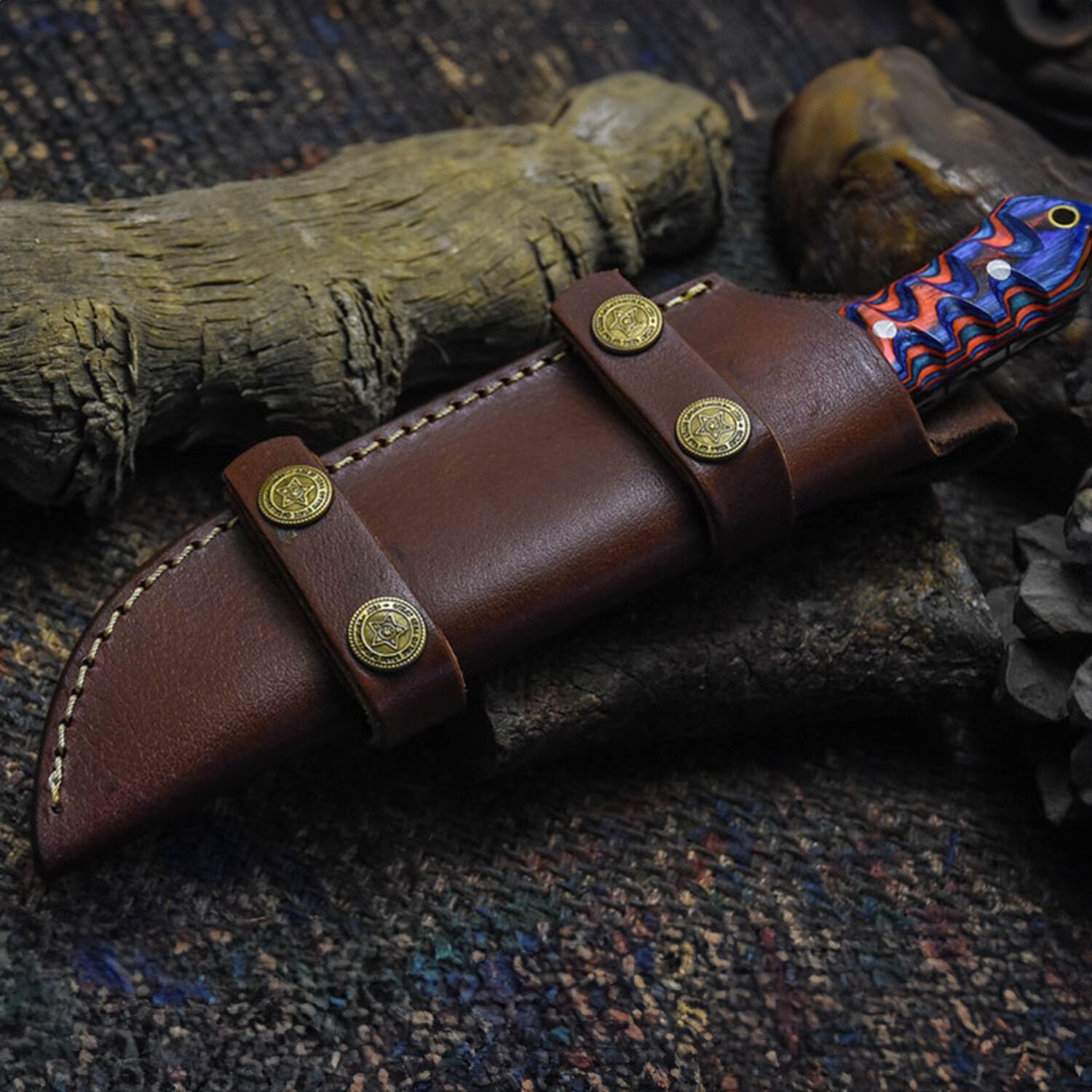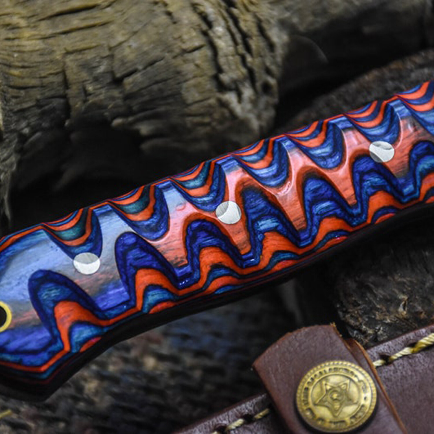 The Warlord'S Edge // Clip Point // Sculptured Orange & Blue Dense Wood