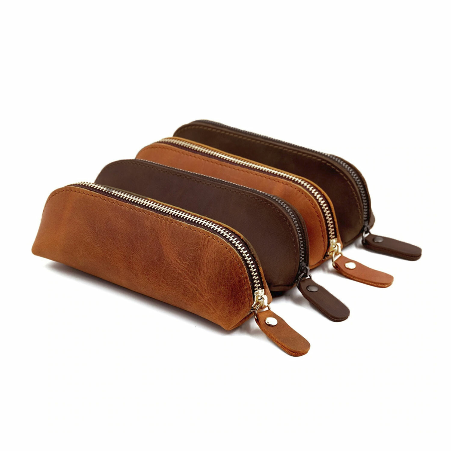 The Paavo Leather Pouch is handcrafted with the utmost care to protect and transport your fountain pens, pencils, and other writing instruments. Each one is durable, lightweight, and made with full grain leather that will stand up to daily wear and tear. Finished with a brass YKK zipper, its design is unmatched and guaranteed to last a lifetime.