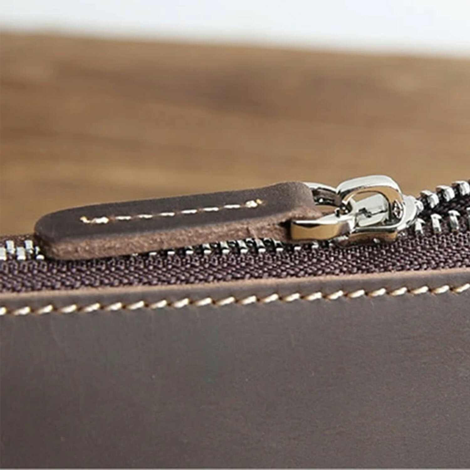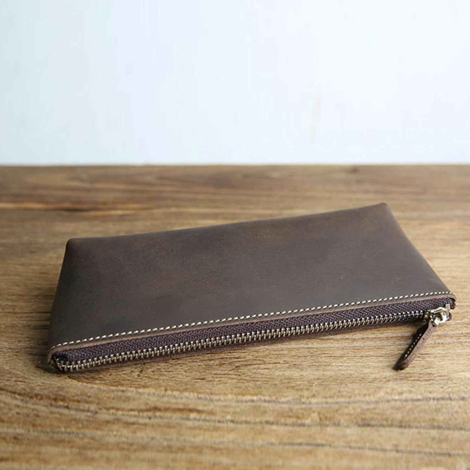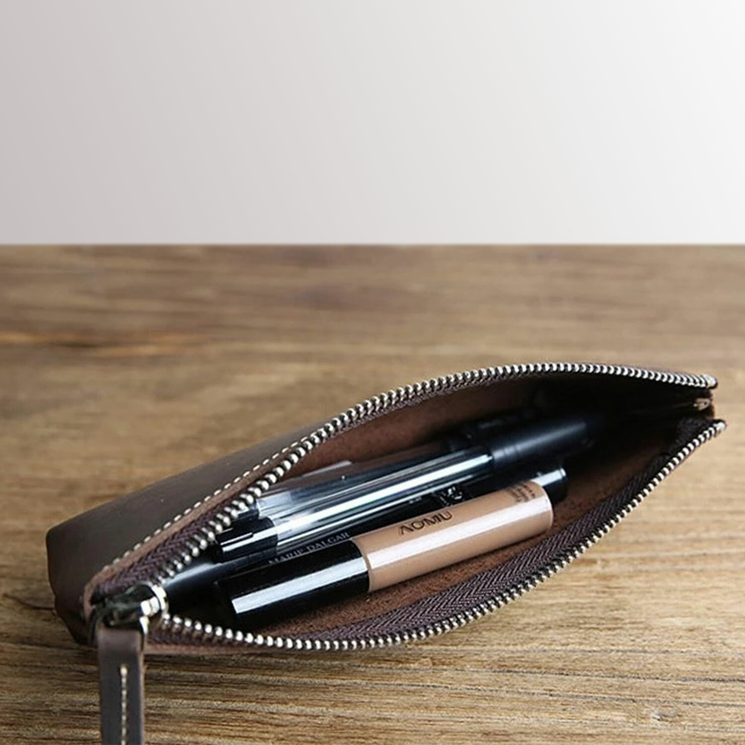 The Pallavi Case is not only stylish but also practical. This leather case is an elegant way to store pens, pencils, accessories, and small toiletries. Hand-stitched with meticulous attention to detail, each one is crafted from full grain Crazy Horse leather with a sturdy YKK zipper in front.