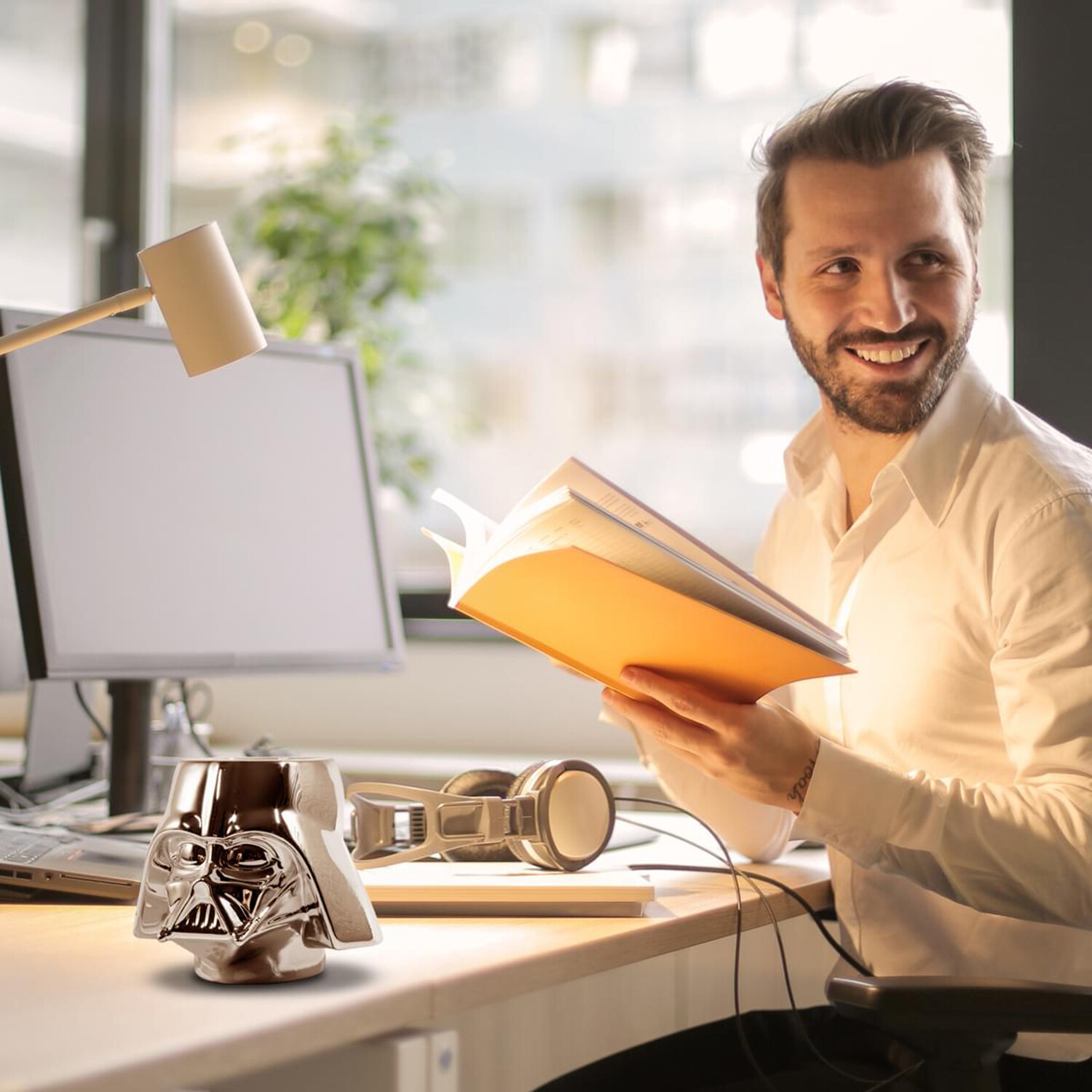 The Star Wars Darth Vader Chrome Helmet Mug is an officially licensed collectible designed for serious fans. Molded from 100% ceramic and finished with a reflective chrome coating, this heat-reactive mug replicates Lord Vader’s iconic helmet with striking detail. A hidden handle lets you sip in style without disturbing the design. BPA-free and hand-wash only, it’s perfect for display or daily coffee breaks.