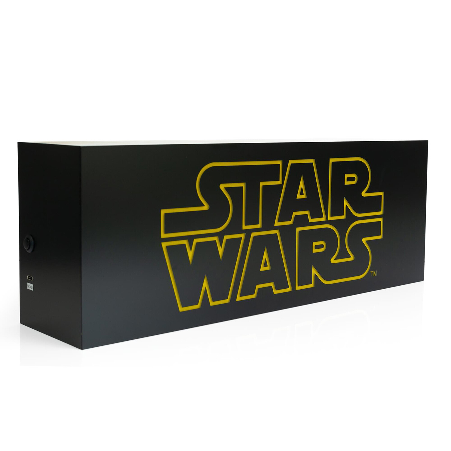This Official Star Wars Logo Light Box looks like it came straight off the iconic opening crawl of the Star Wars saga films. Put the finishing touch on your Star Wars collection with this fandom-themed mood light. Perfect for displaying, this decorative light box measures approximately 17 x 6 x 4 inches. Powered by USB (cable included) or electricity (USB to AC adapter included), this mood light uses energy-efficient and long-lasting LED light bulbs to illuminate your space.